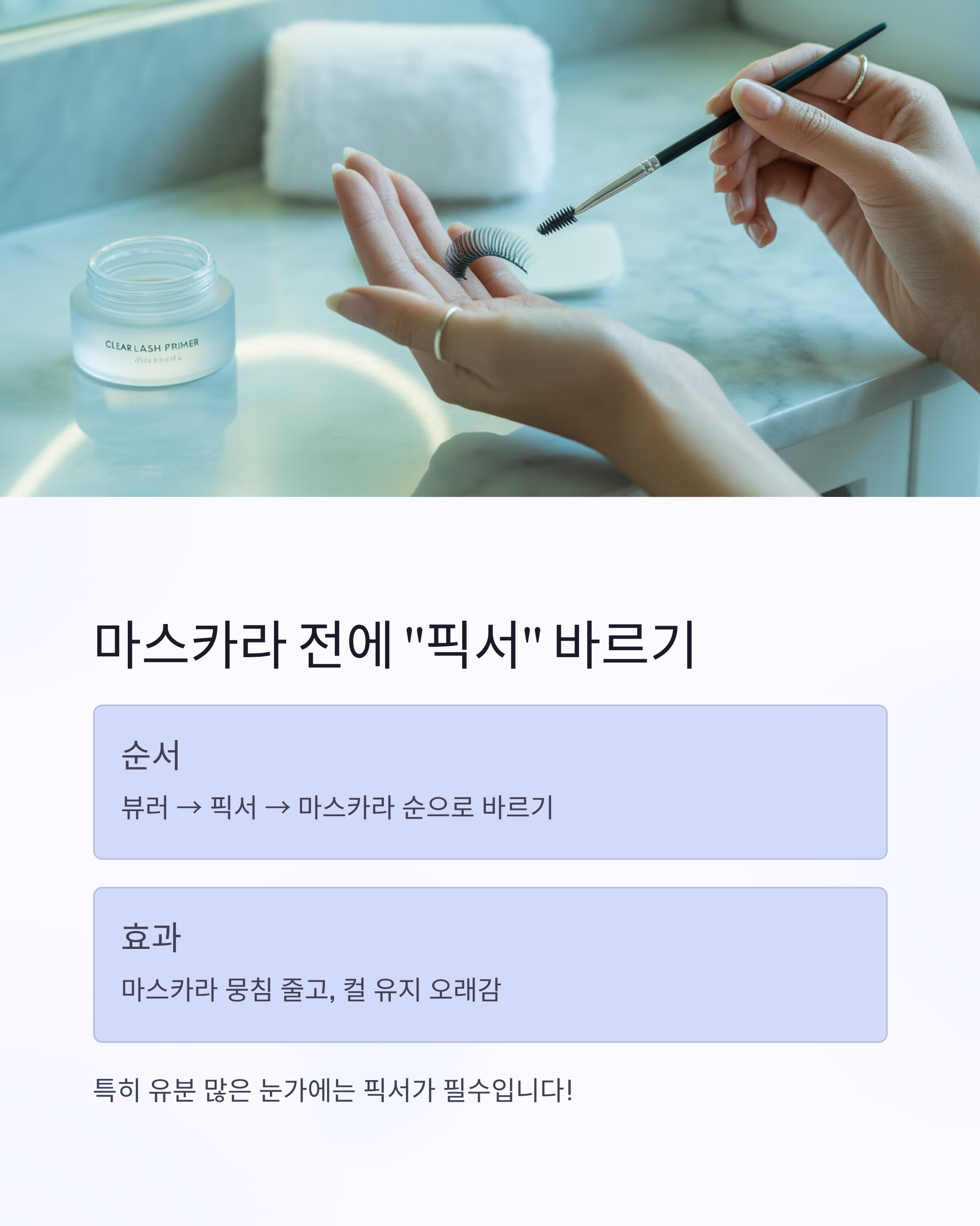 • 뷰러 후 속눈썹 픽서 먼저 발라주면