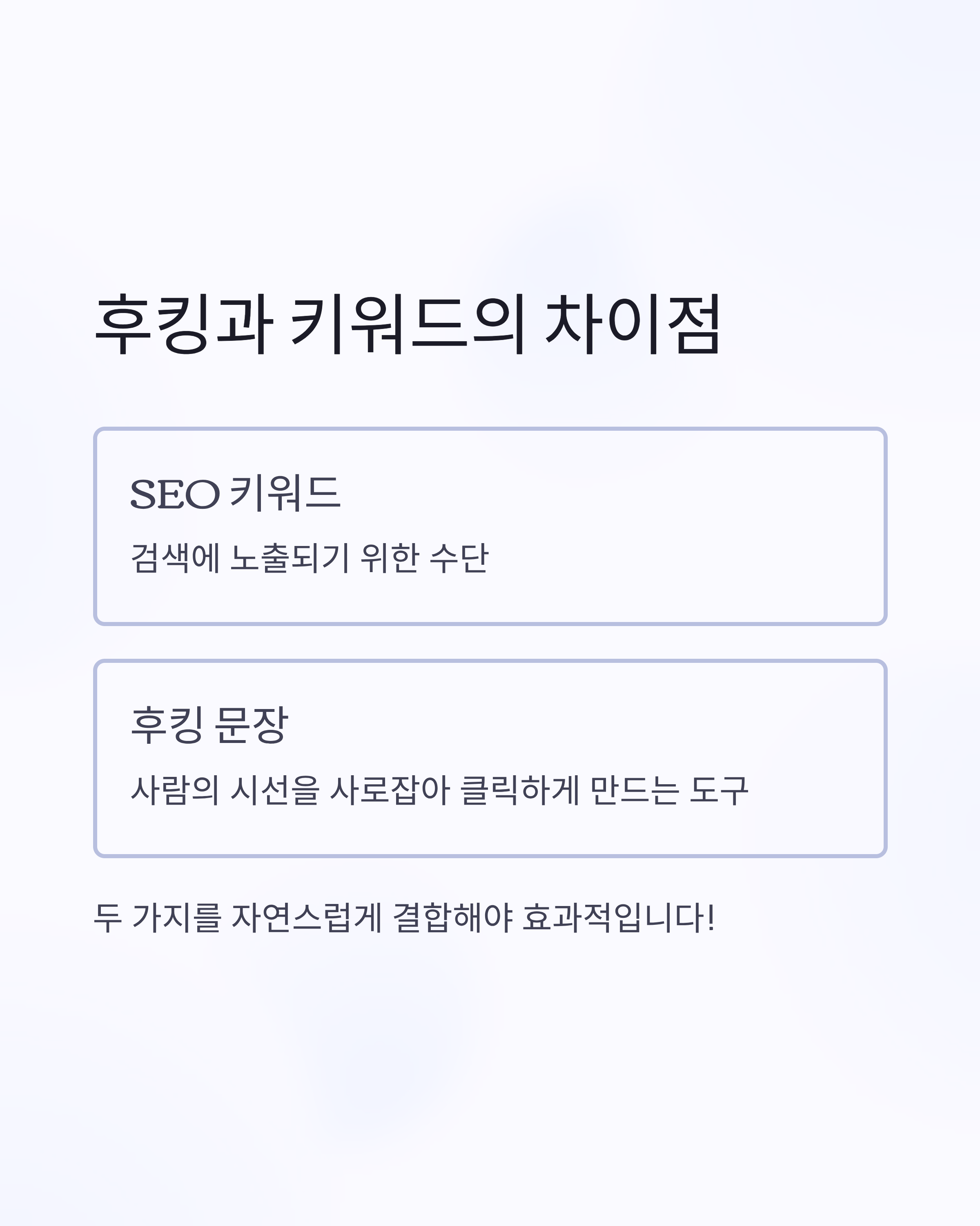 후킹 문장은 사람의 시선을 사로잡아 클릭하게 만드는 도구입니다.