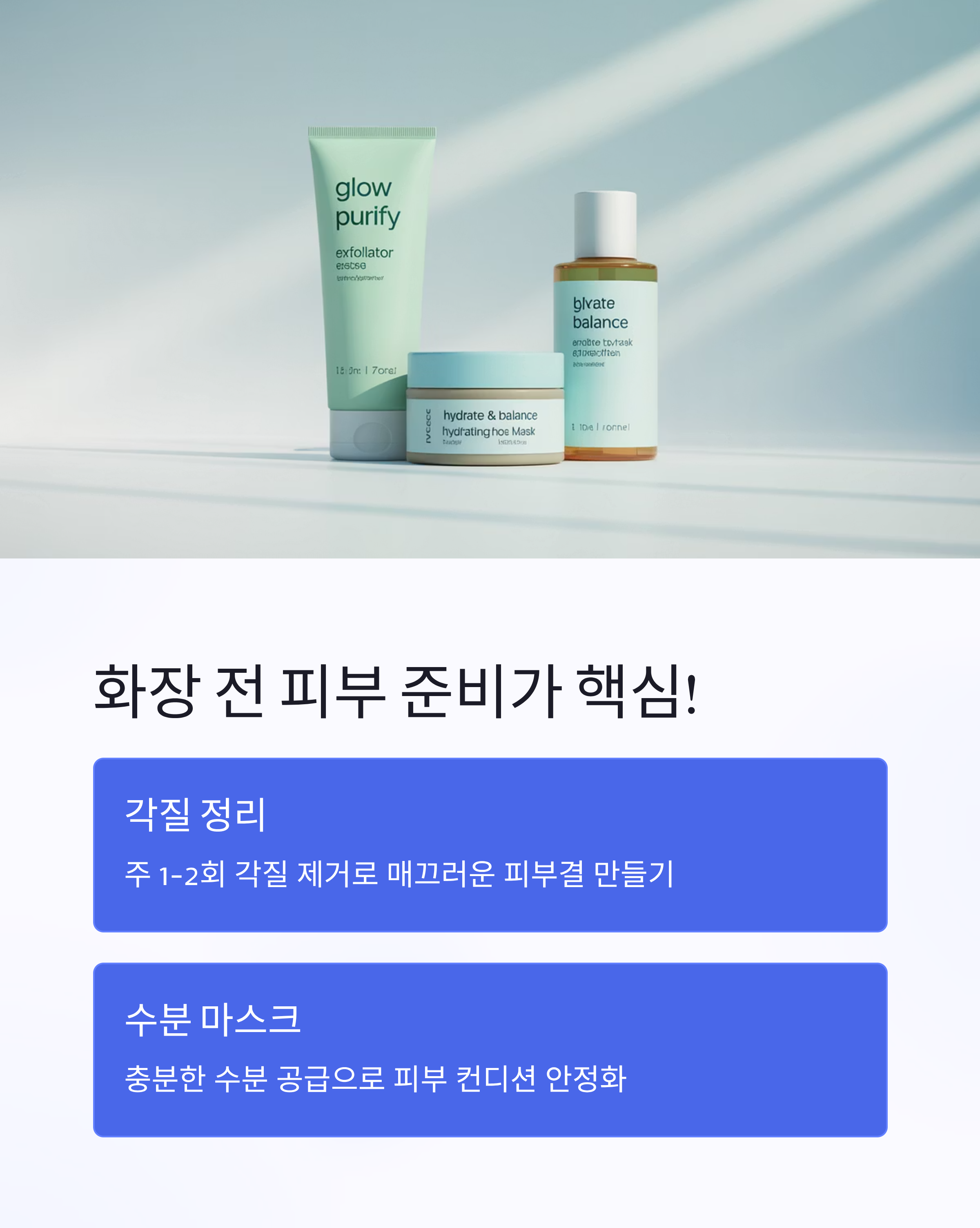 화장 전 수분 크림 또는 수분 에센스로 충분히