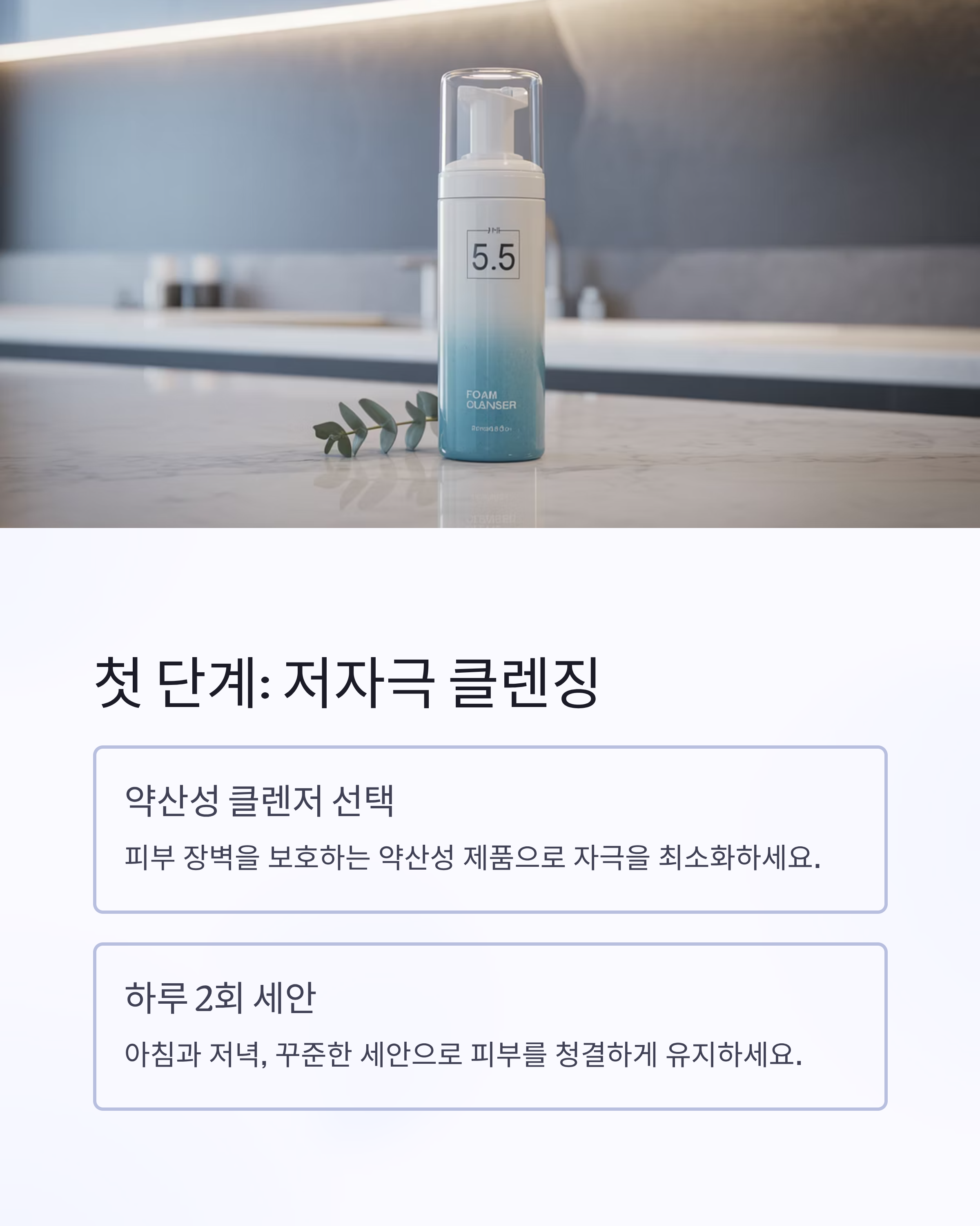 피부 장벽을 보호해주는 약산성 클렌저를 사용하는 것이 중요합니다.
