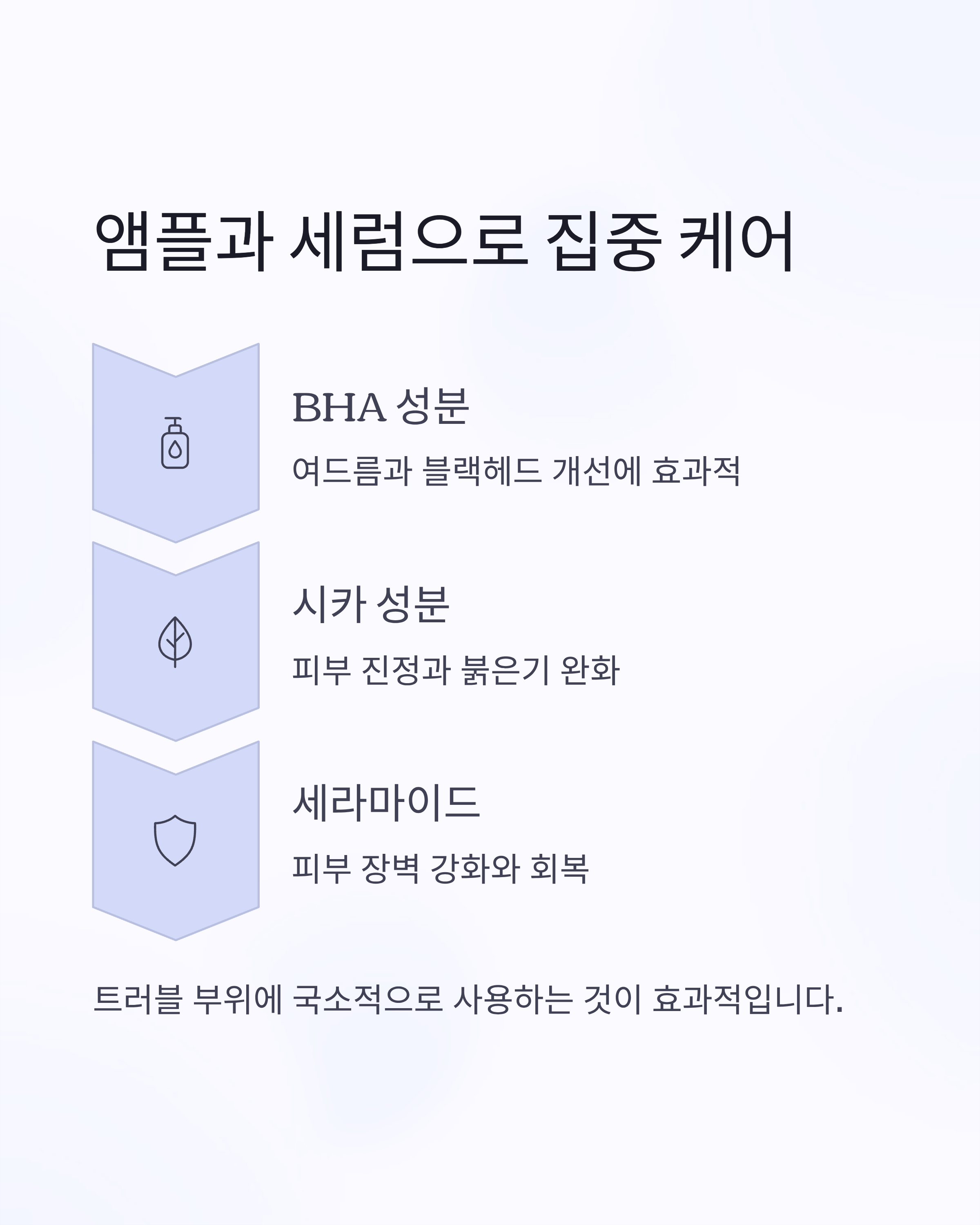 트러블이 올라오는 부위에는 앰플이나 세럼으로 집중 케어하는 것이 좋습니다.