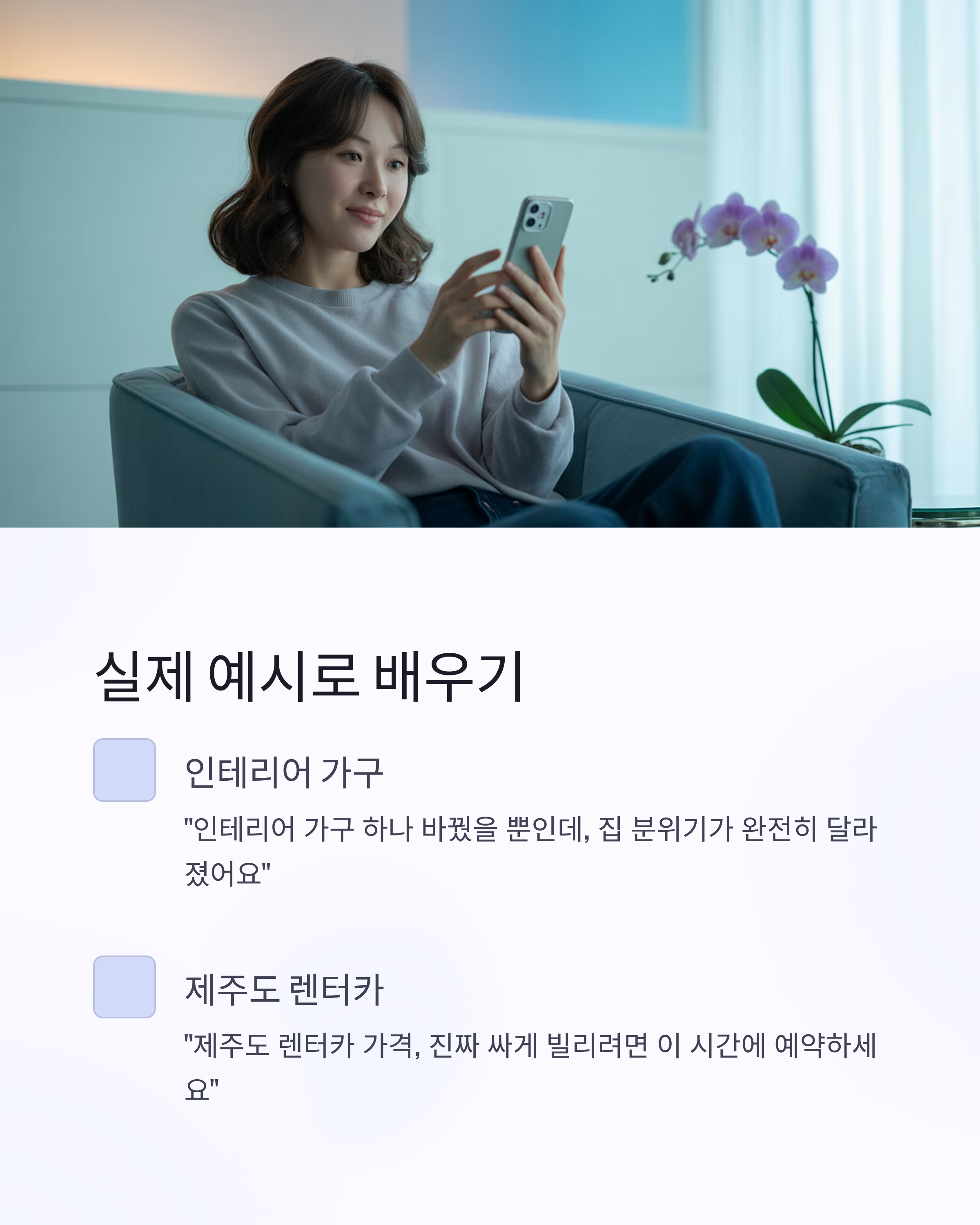 후킹문장: "인테리어 가구 하나 바꿨을 뿐인데, 집 분위기가 완전히 달라졌어요" - 키워드: 제주도 렌터카