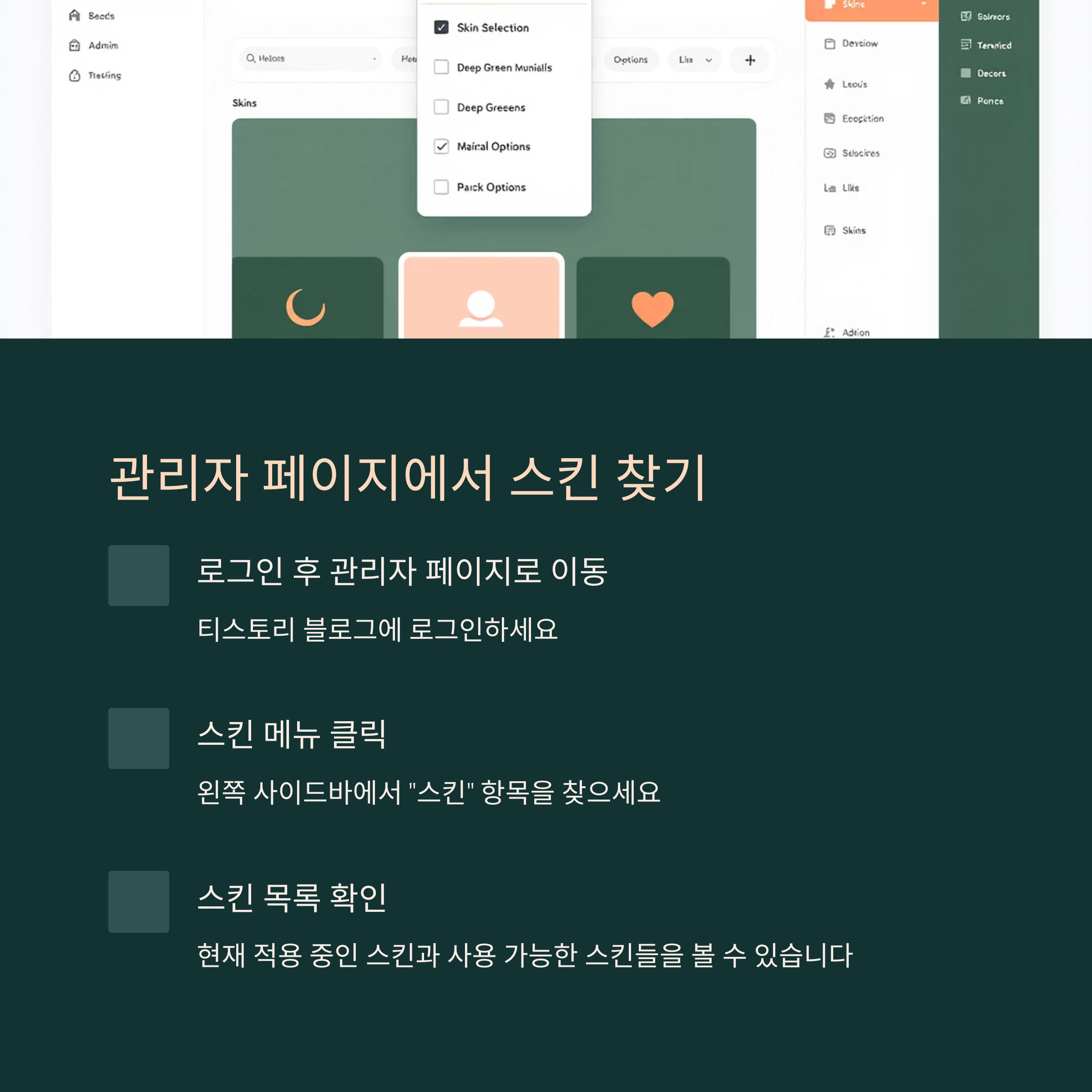 관리자 페이지에서 스킨 메뉴 찾기