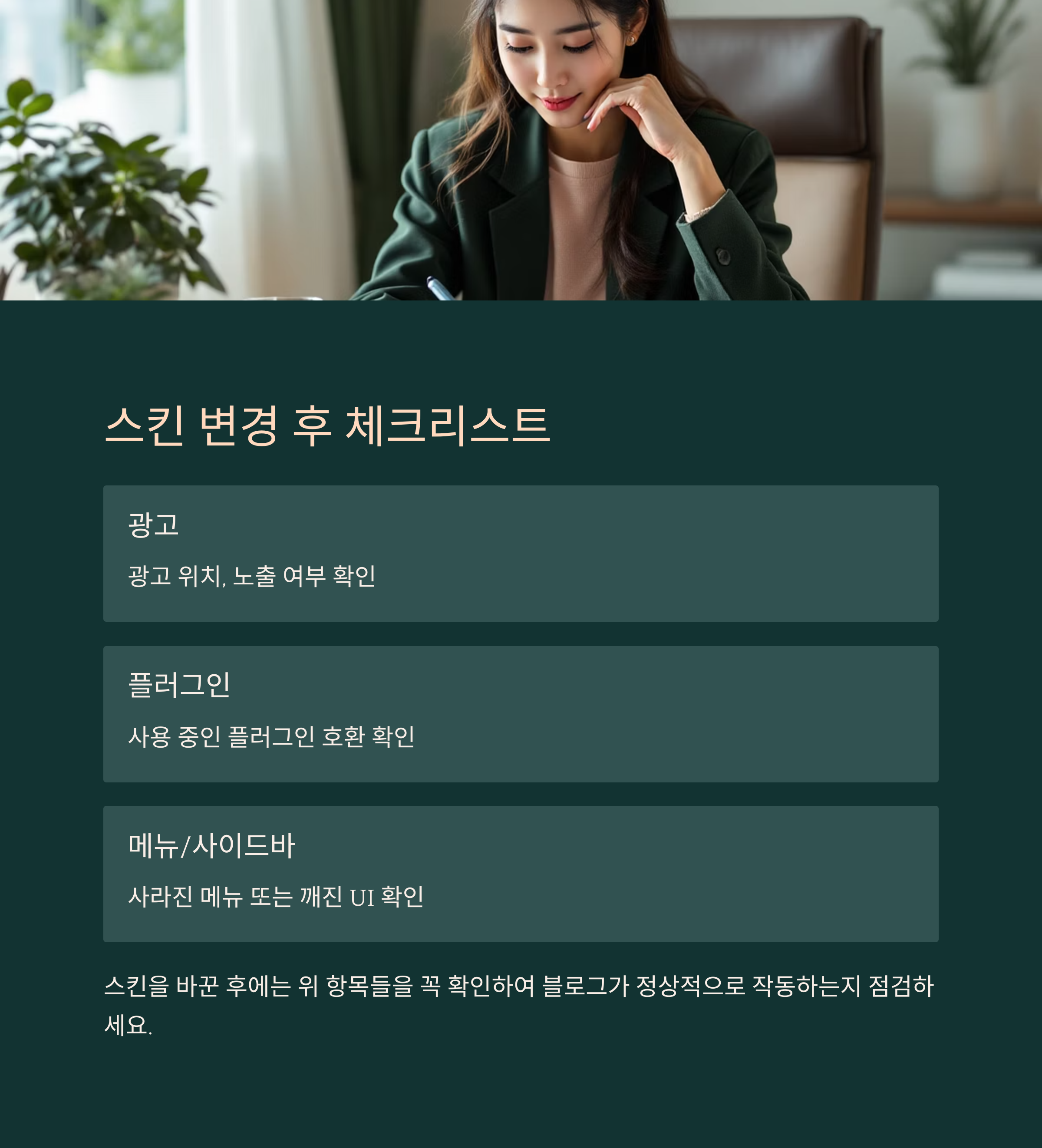 변경 후 체크리스트: 광고·플러그인·메뉴
