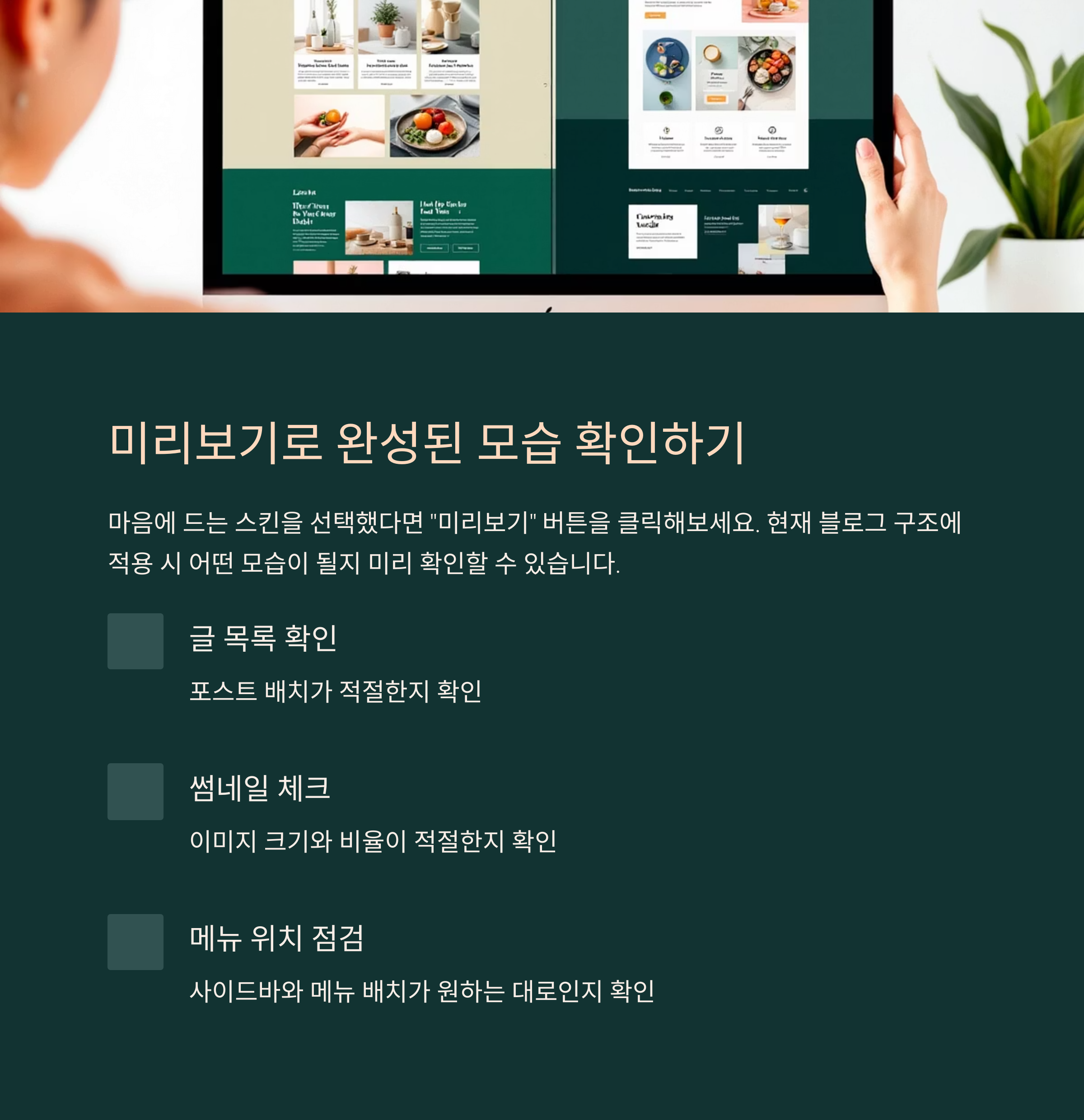 이 기능을 사용하면 현재 블로그 구조에 적용 시 어떤 모습이 될지 미리 확인할 수 있습니다.
