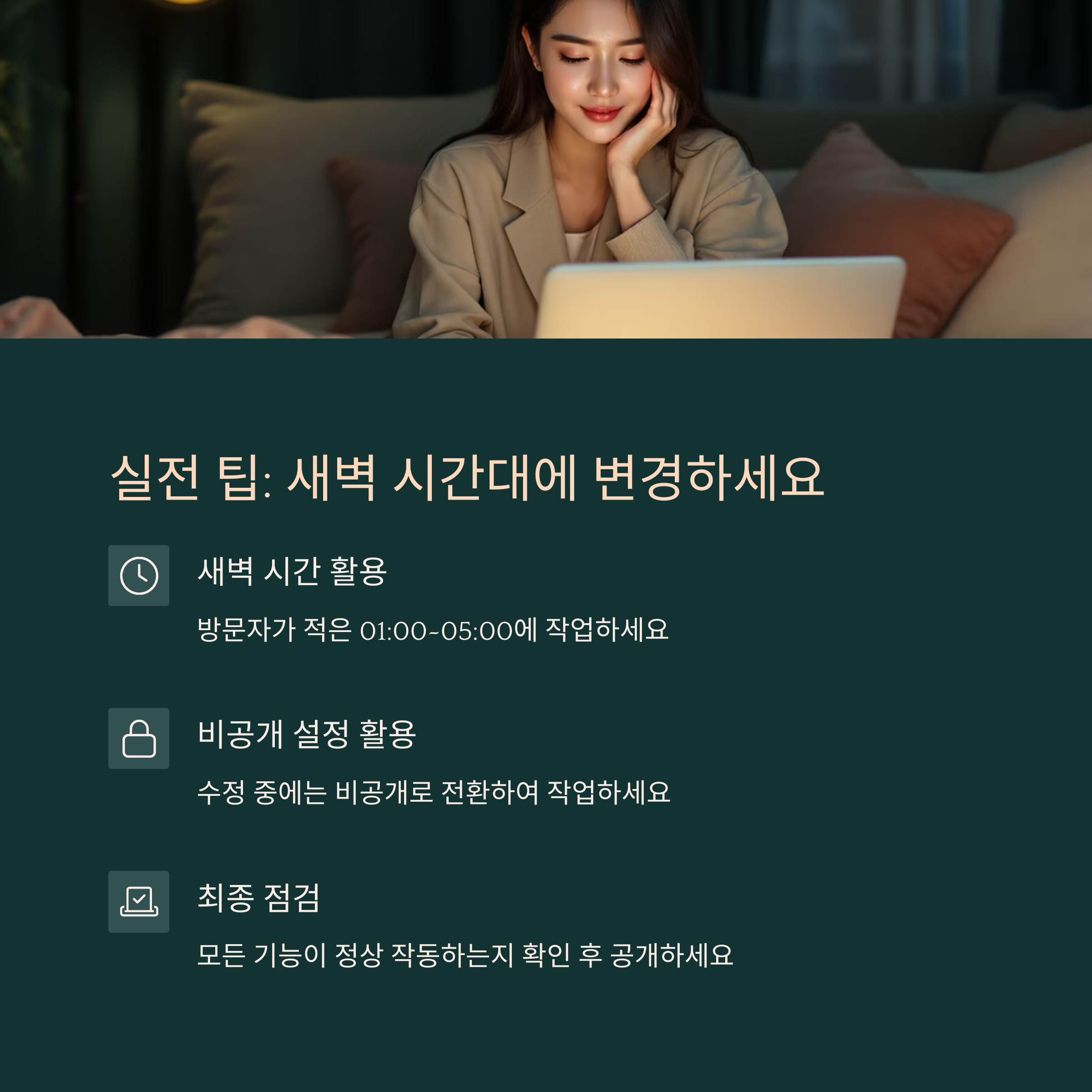 또한, 수정 중에는 비공개 설정을 활용하여 작업 결과를 점검하세요.