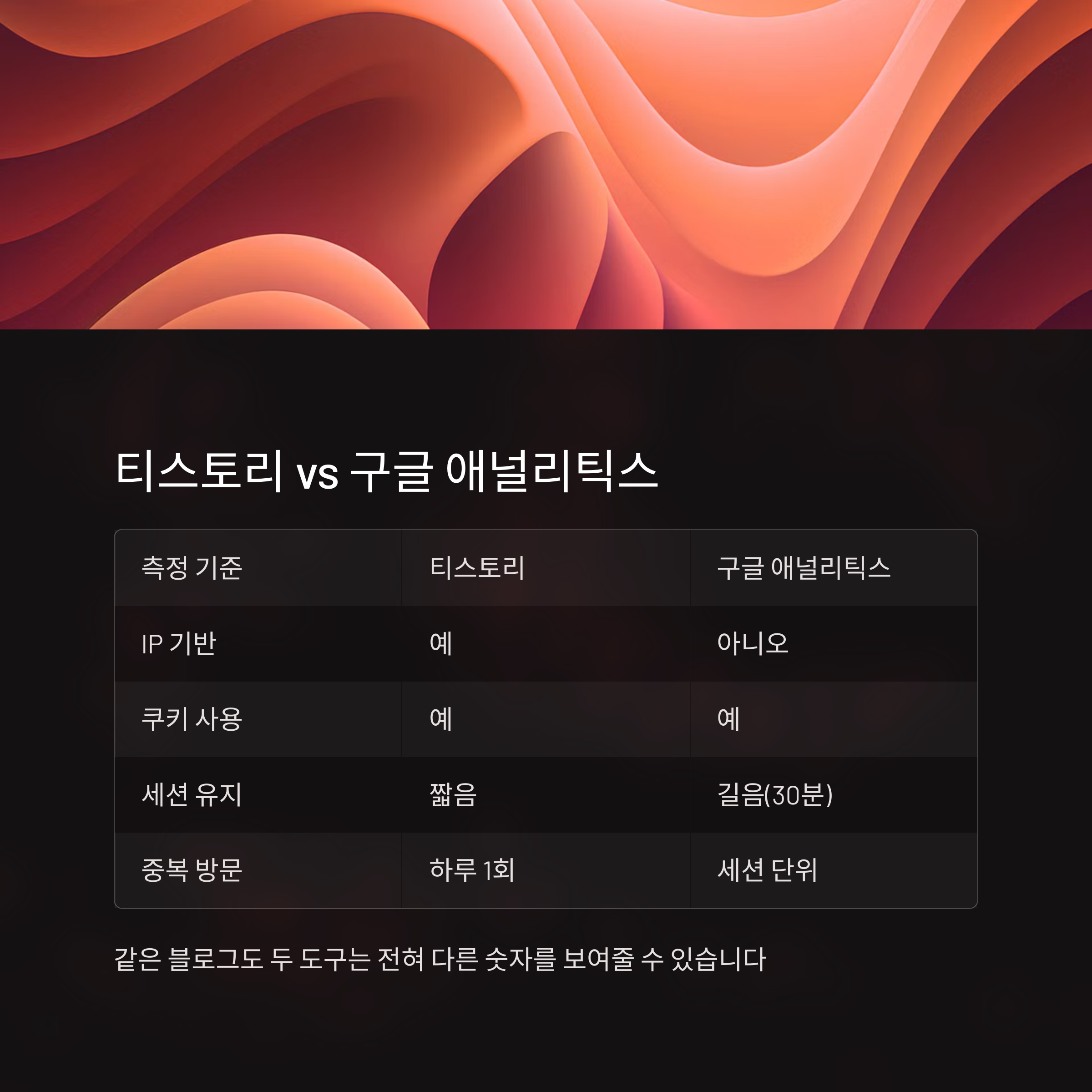 중요: "같은 블로그를 측정하더라도 두 도구는 전혀 다른 숫자를 보여줄 수 있습니다"