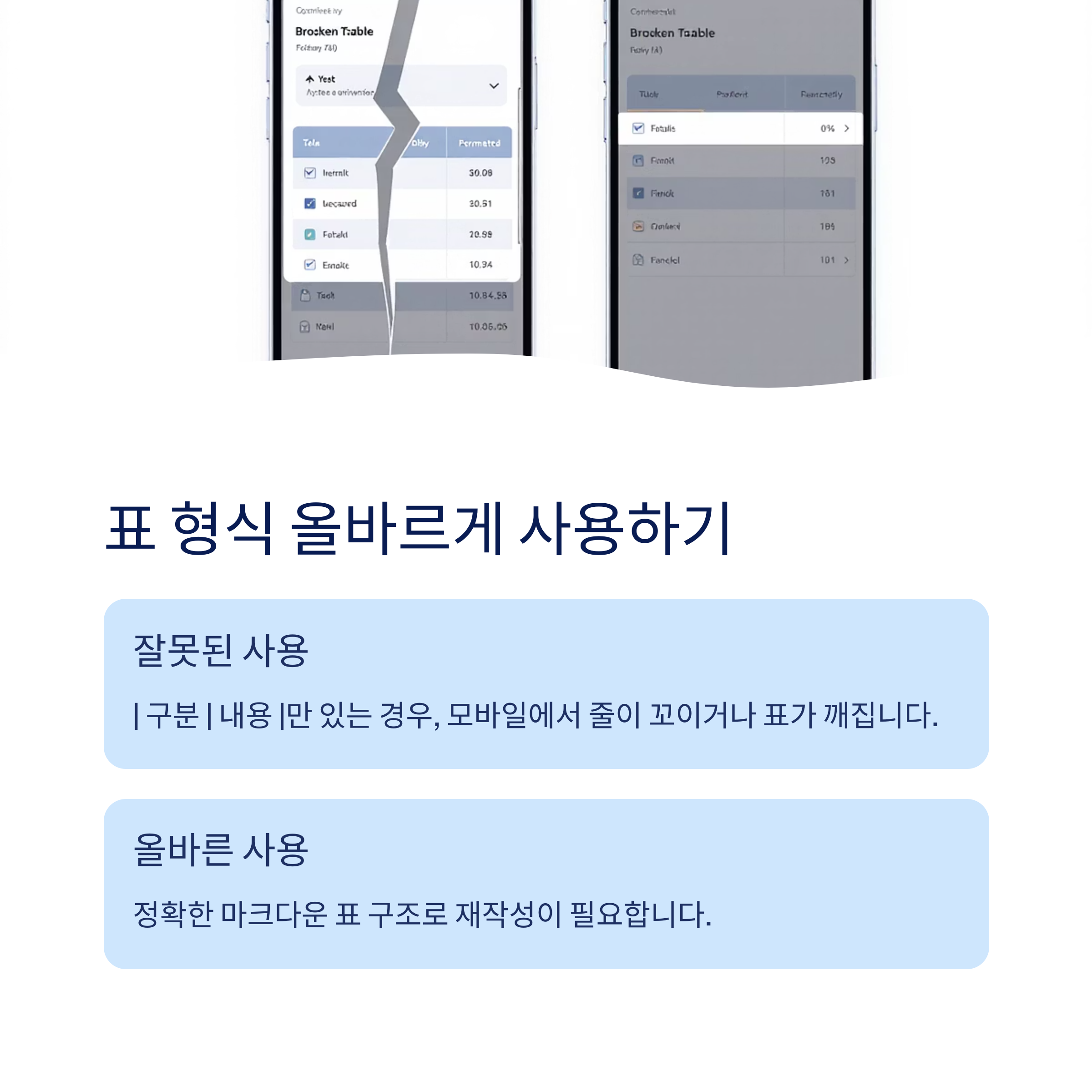 | 표 깨짐 | 마크다운 표 아님 | 실제 표 형식으로 작성 |