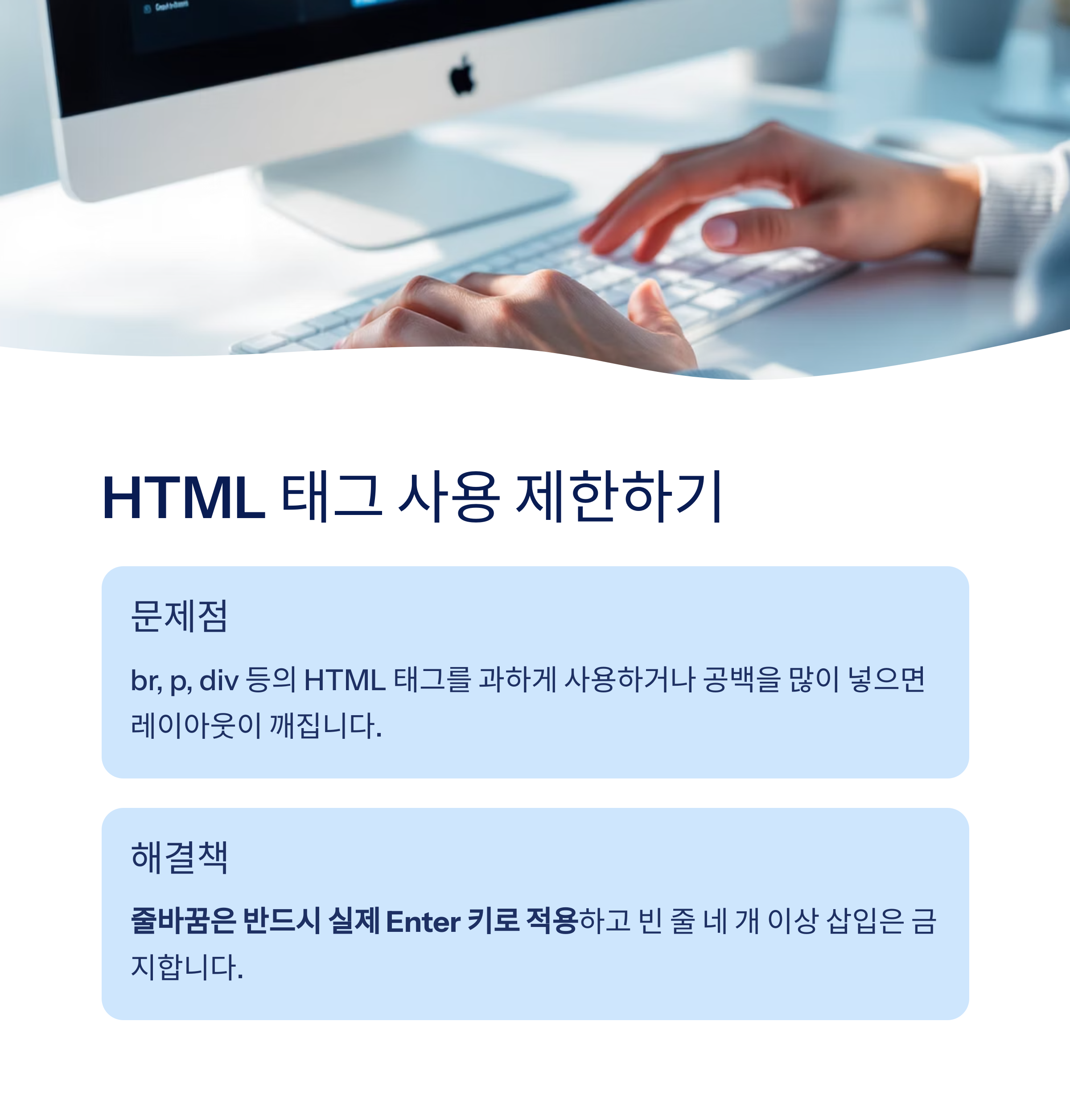 <br>, <p>, <div> 등의 HTML 태그를 과하게 사용하거나