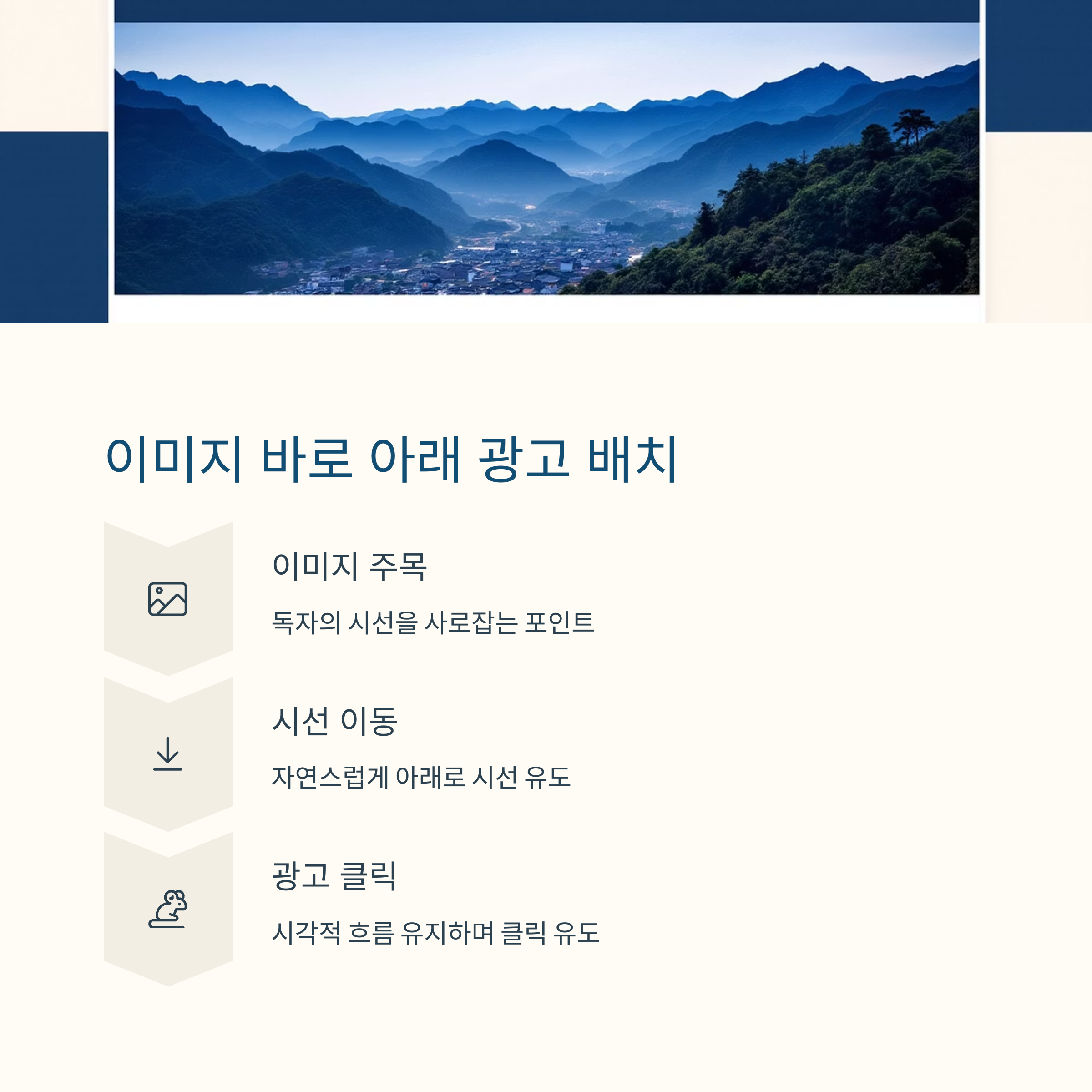 그 아래 광고를 배치하면 이미지에 주목한 독자의 시선이 자연스럽게 광고로 이어지게 됩니다