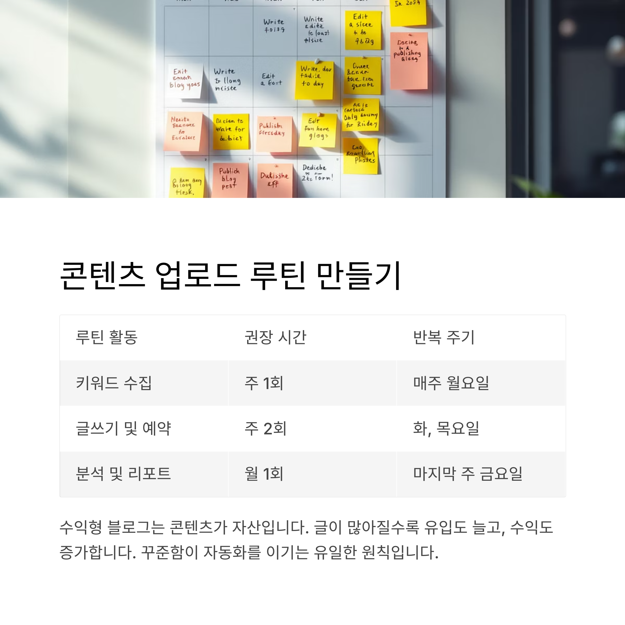 "매주 2개 글 업로드"라는 원칙만으로도