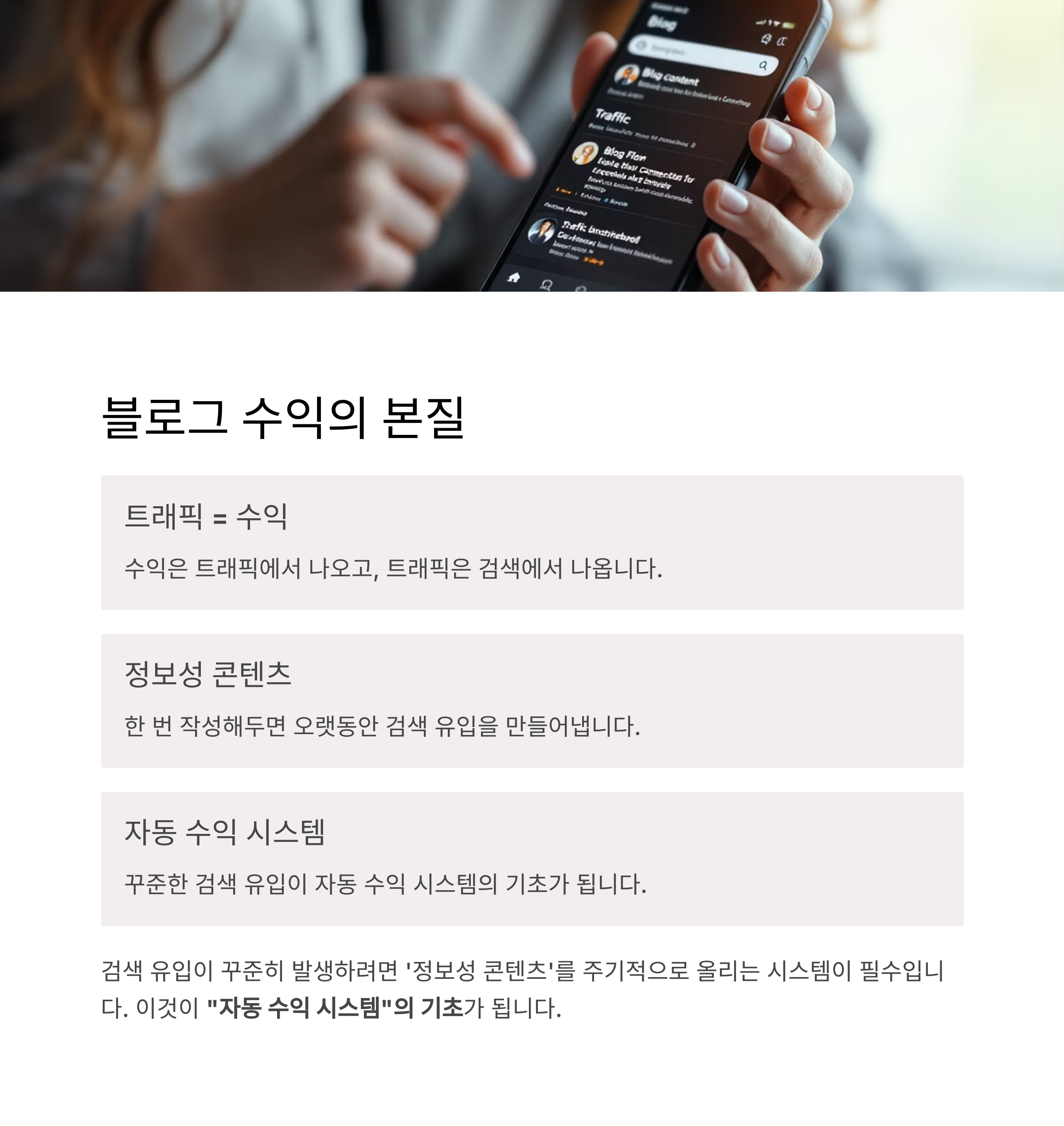 블로그는 "시간이 지날수록 수익이 늘어나는 자동화 시스템"으로 진화합니다