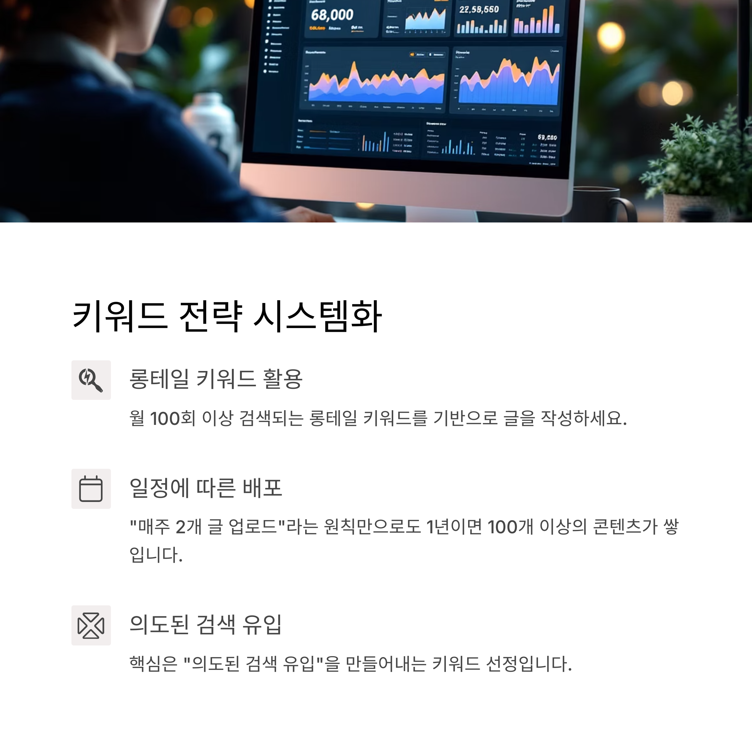 핵심은 "의도된 검색 유입"을 만들어내는 키워드 선정입니다