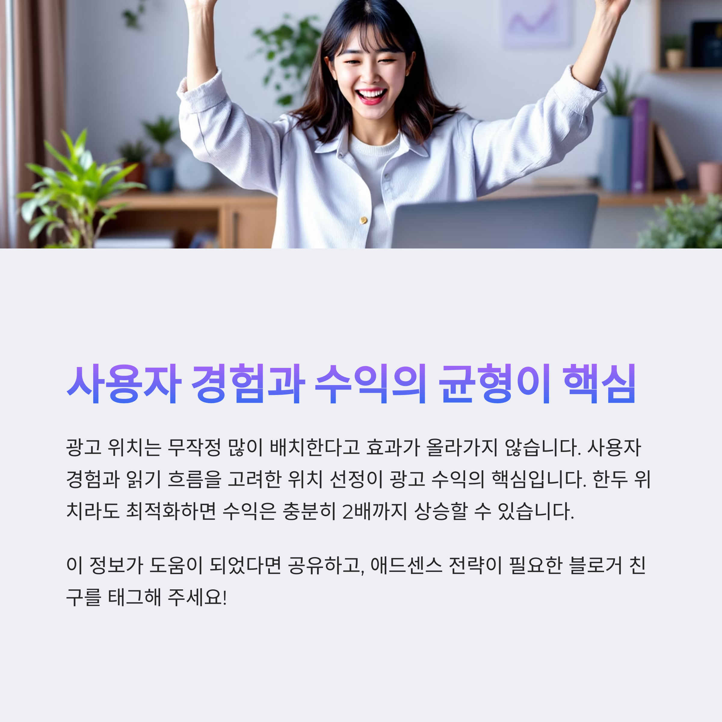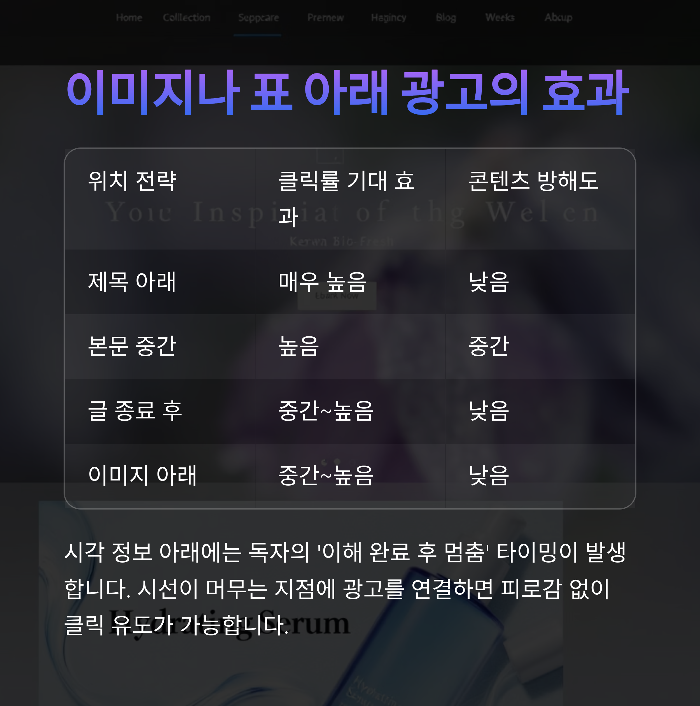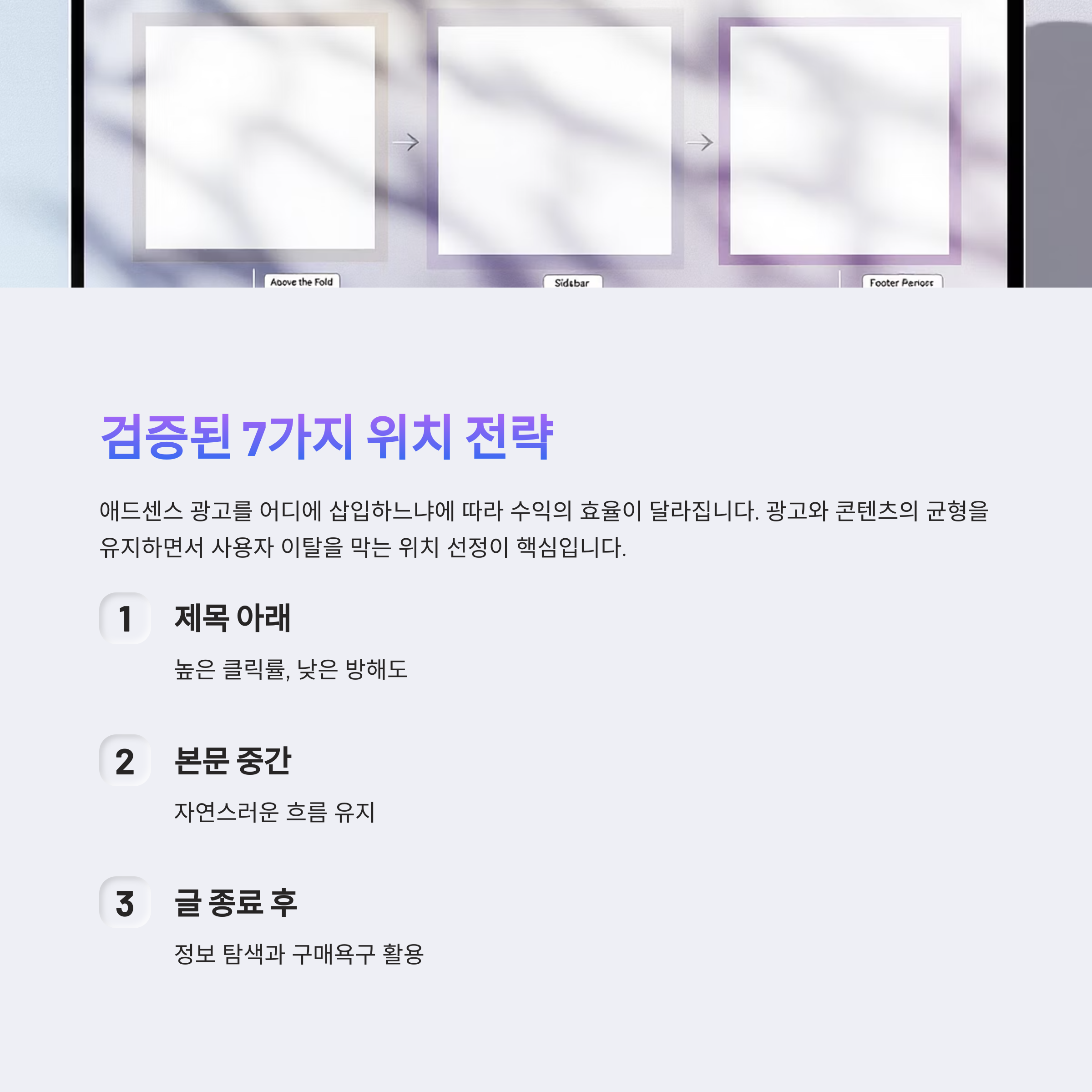 사용자 경험과 읽기 흐름을 고려한 위치 선정이 광고 수익의 핵심입니다