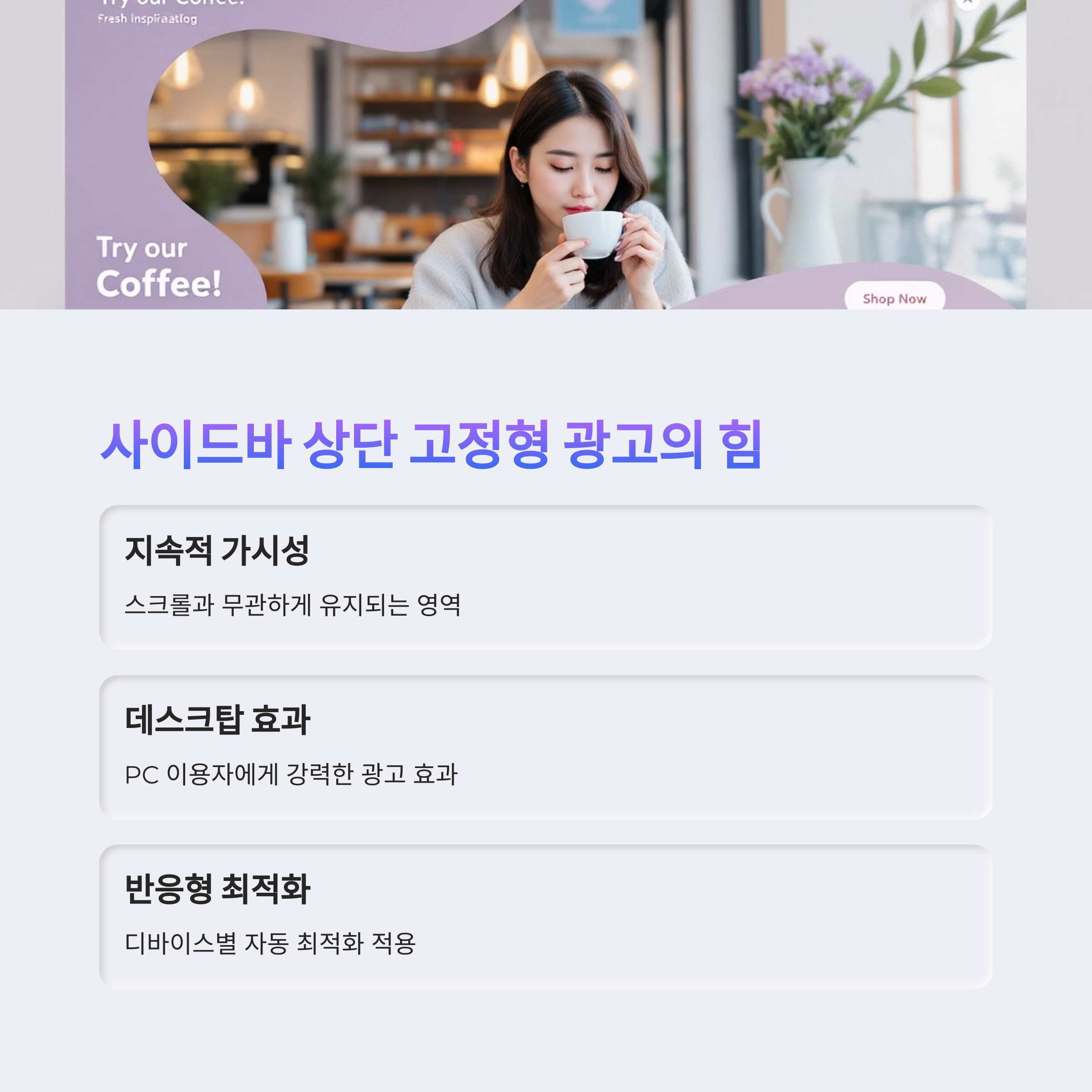 특히 데스크탑 이용자 비중이 높은 블로그나 웹사이트에서는 이 위치가 강력한 광고 공간이 됩니다