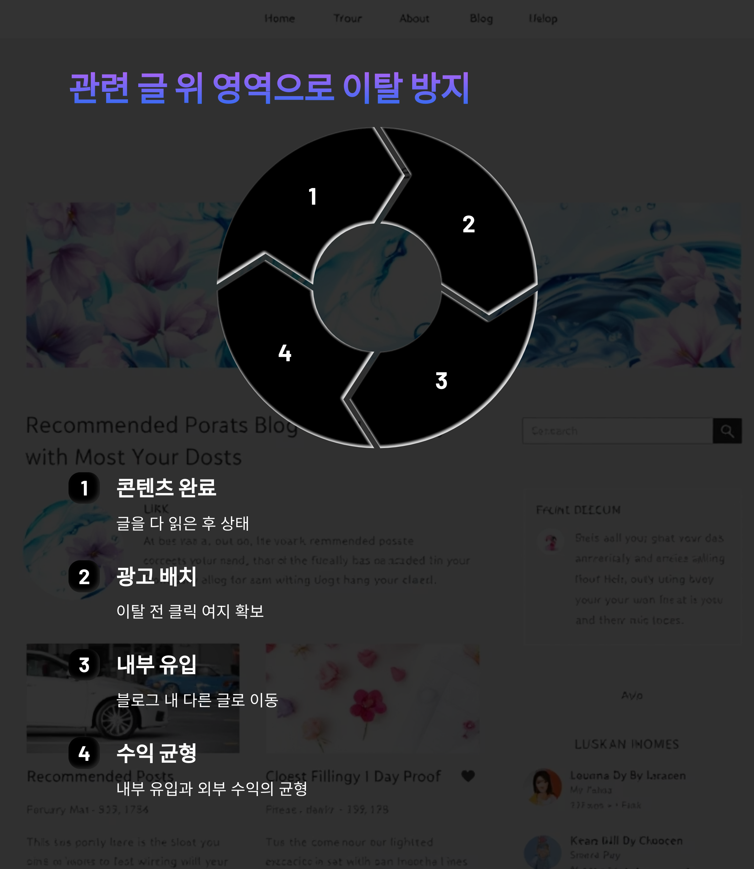 콘텐츠를 다 읽은 후, 블로그 내 다른 글로 유입되기 전의 타이밍입니다