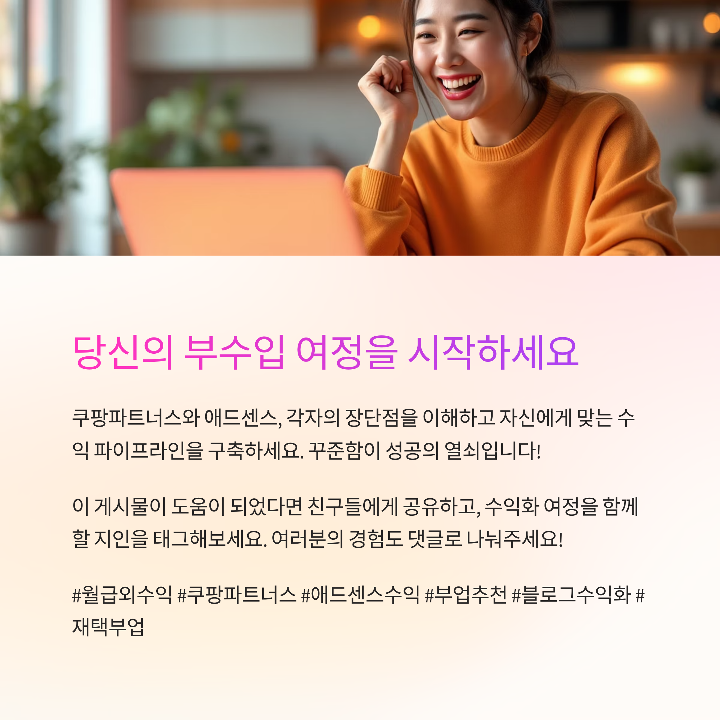 꾸준한 부수입을 원한다면 콘텐츠 기반 수익 창출은 핵심 전략입니다