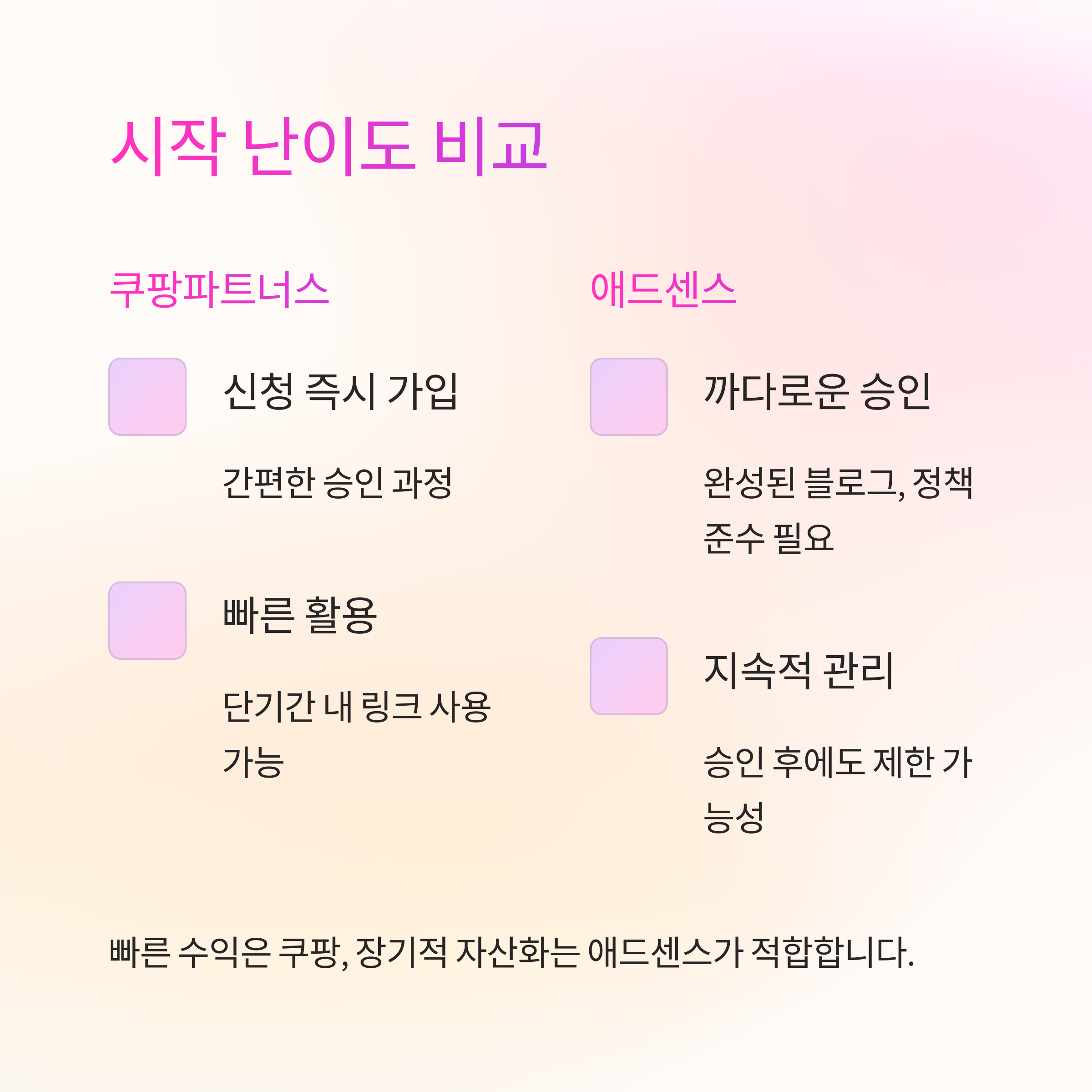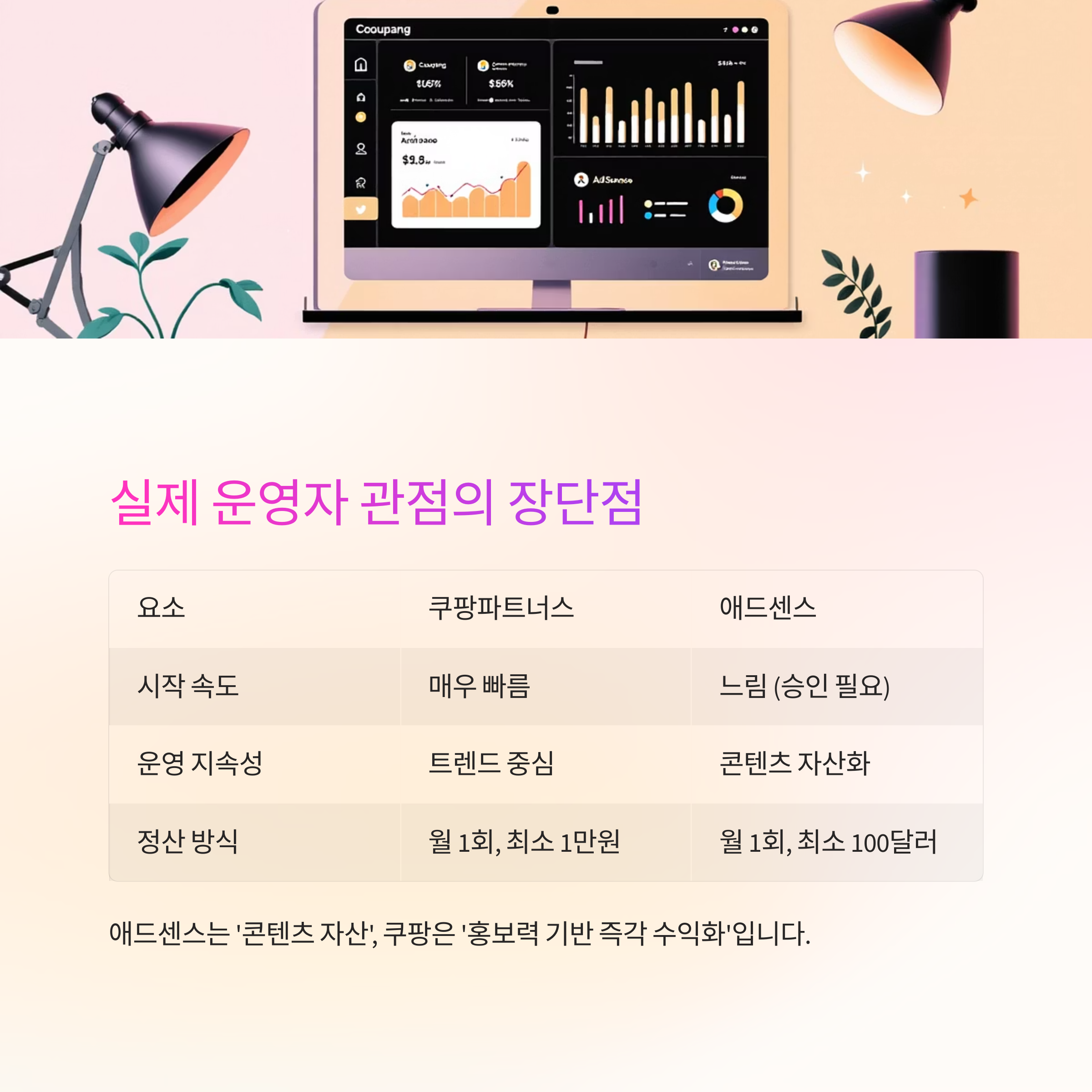 빠른 수익 시도엔 쿠팡, 장기적 자산화는 애드센스가 적합합니다