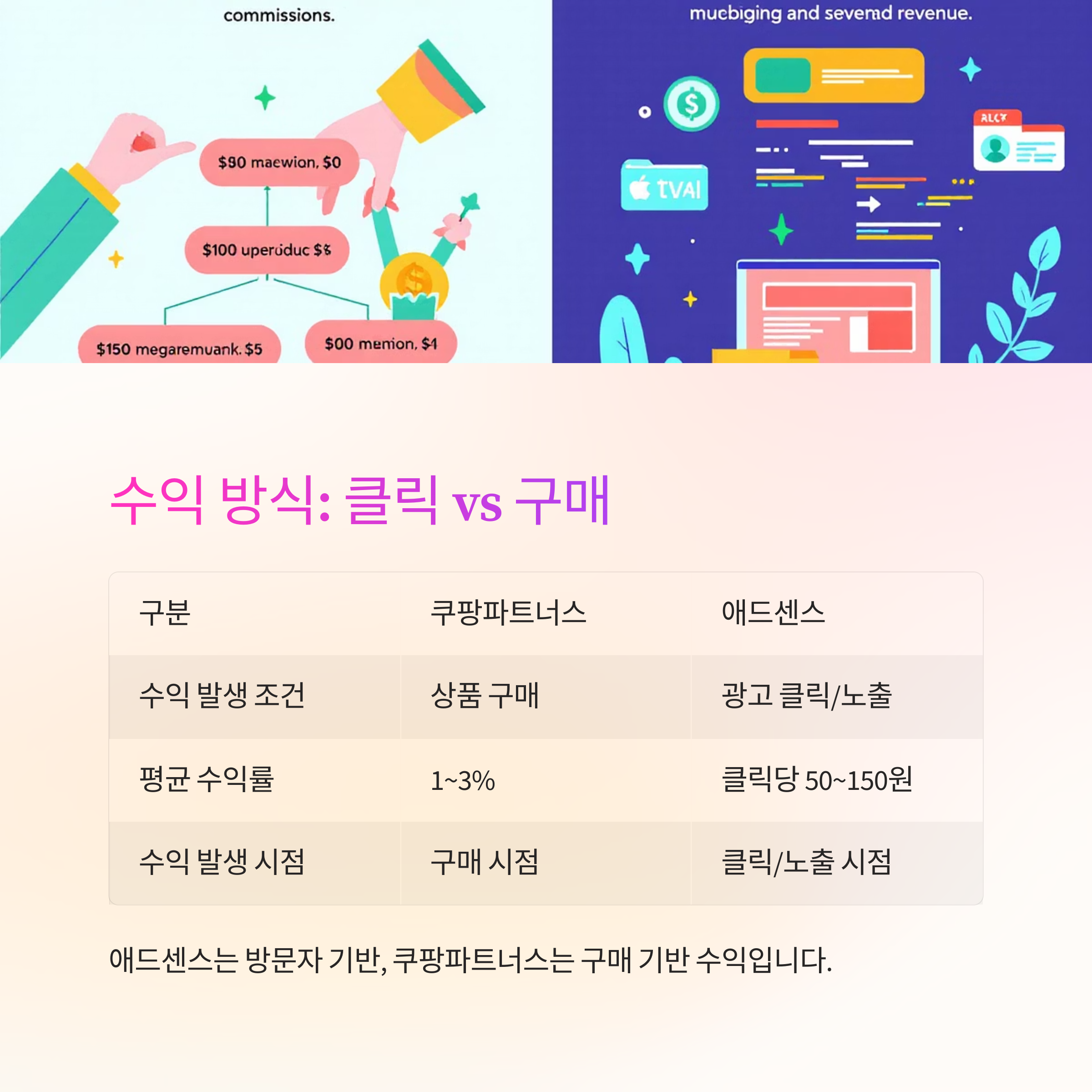 수익 방식 비교: 클릭 vs 구매
