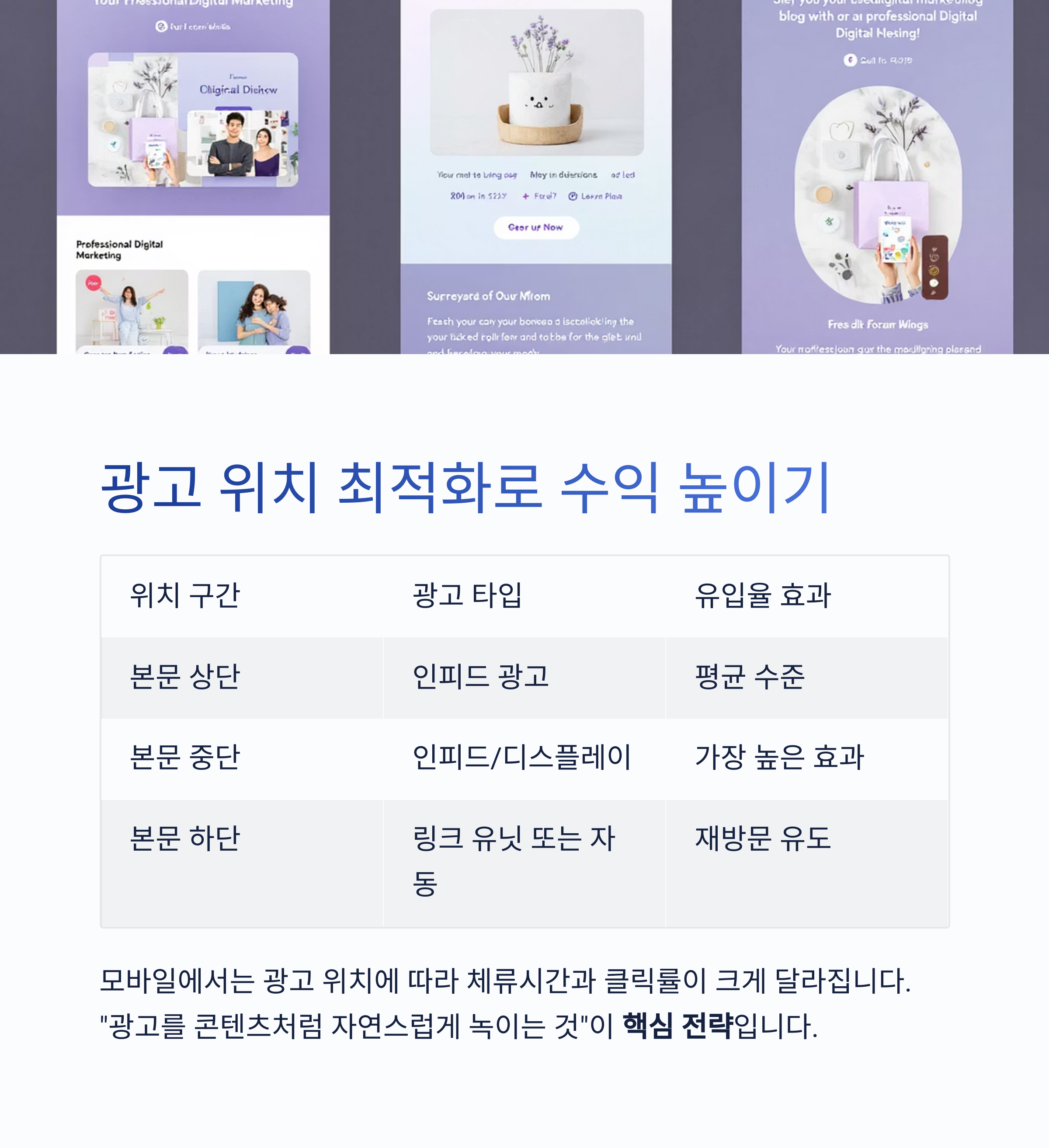 모바일에서는 광고 위치에 따라 체류시간과 클릭률이 크게 달라집니다