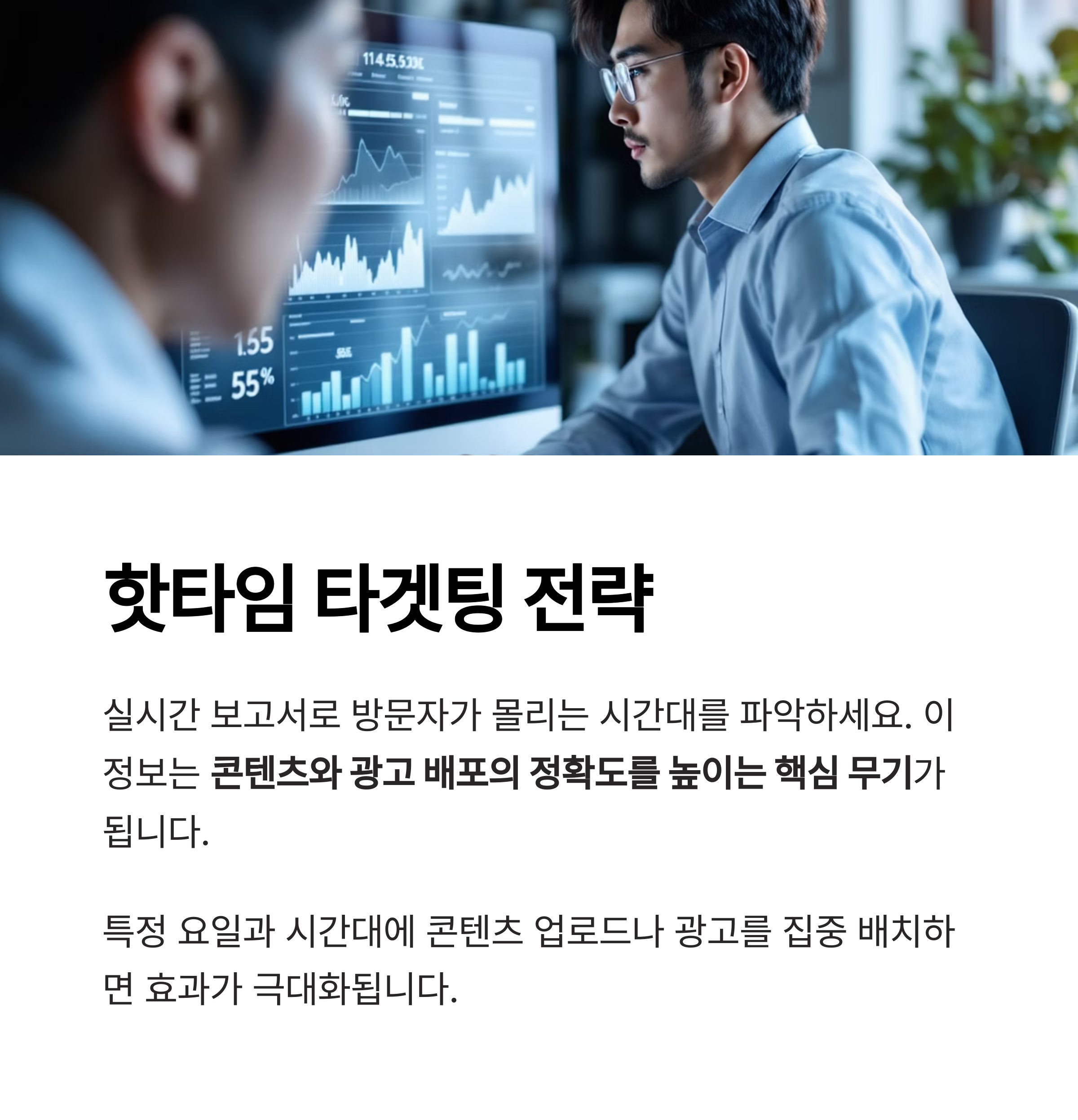 해당 시간대에 콘텐츠 업로드나 광고 집중 배치를 시도해보세요