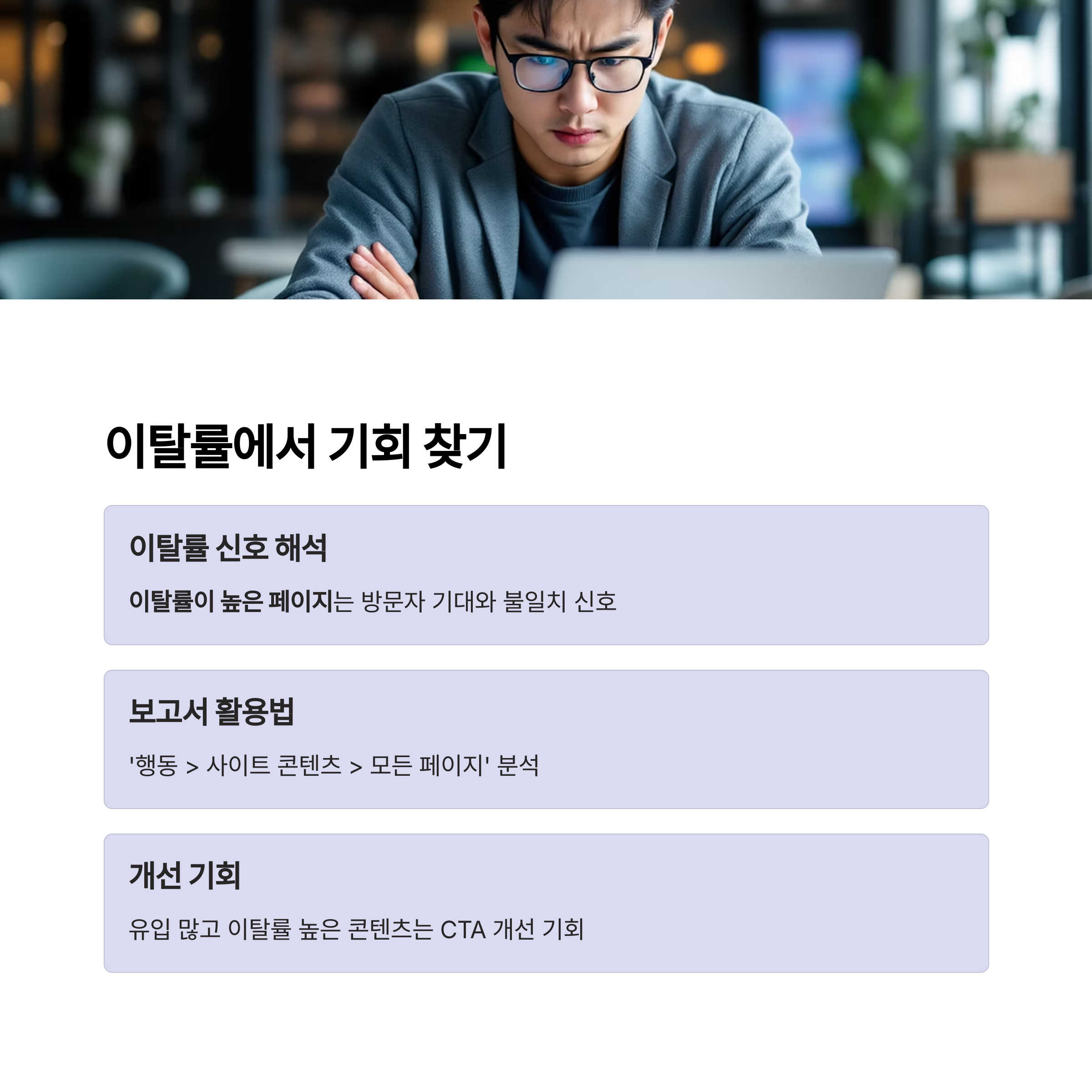 이탈률이 높은 페이지는 방문자의 기대와 맞지 않다는 신호입니다