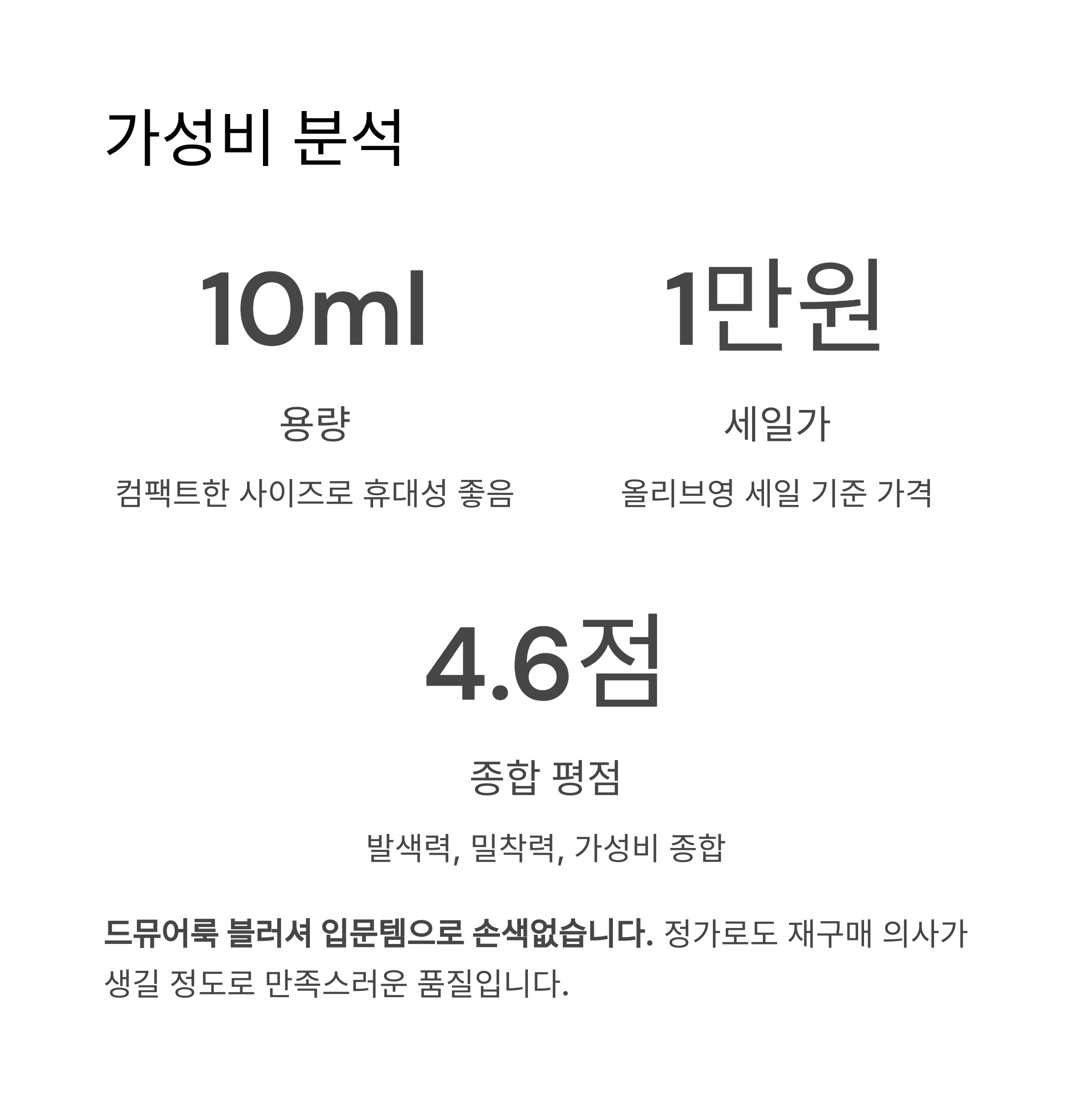 10ml 용량에 약 1만 원 초반 가격은 꽤 합리적이었습니다.