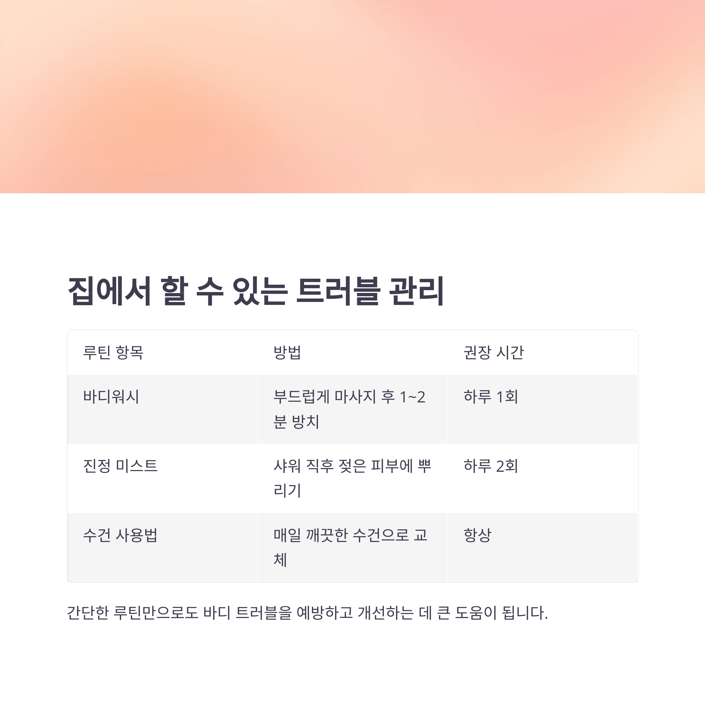 아래 표는 바디 트러블 관리 루틴을 정리한 것입니다