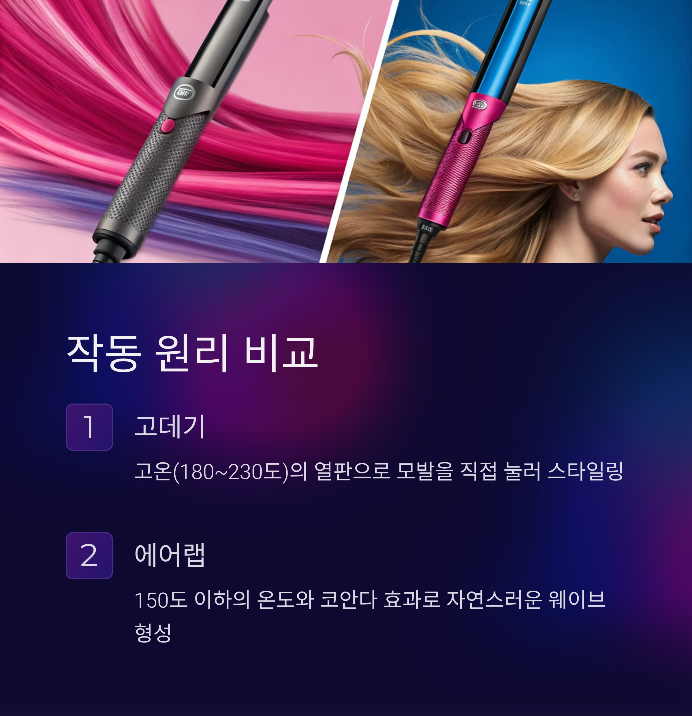 열로 굽는 고데기 vs 바람으로 말리는 에어랩