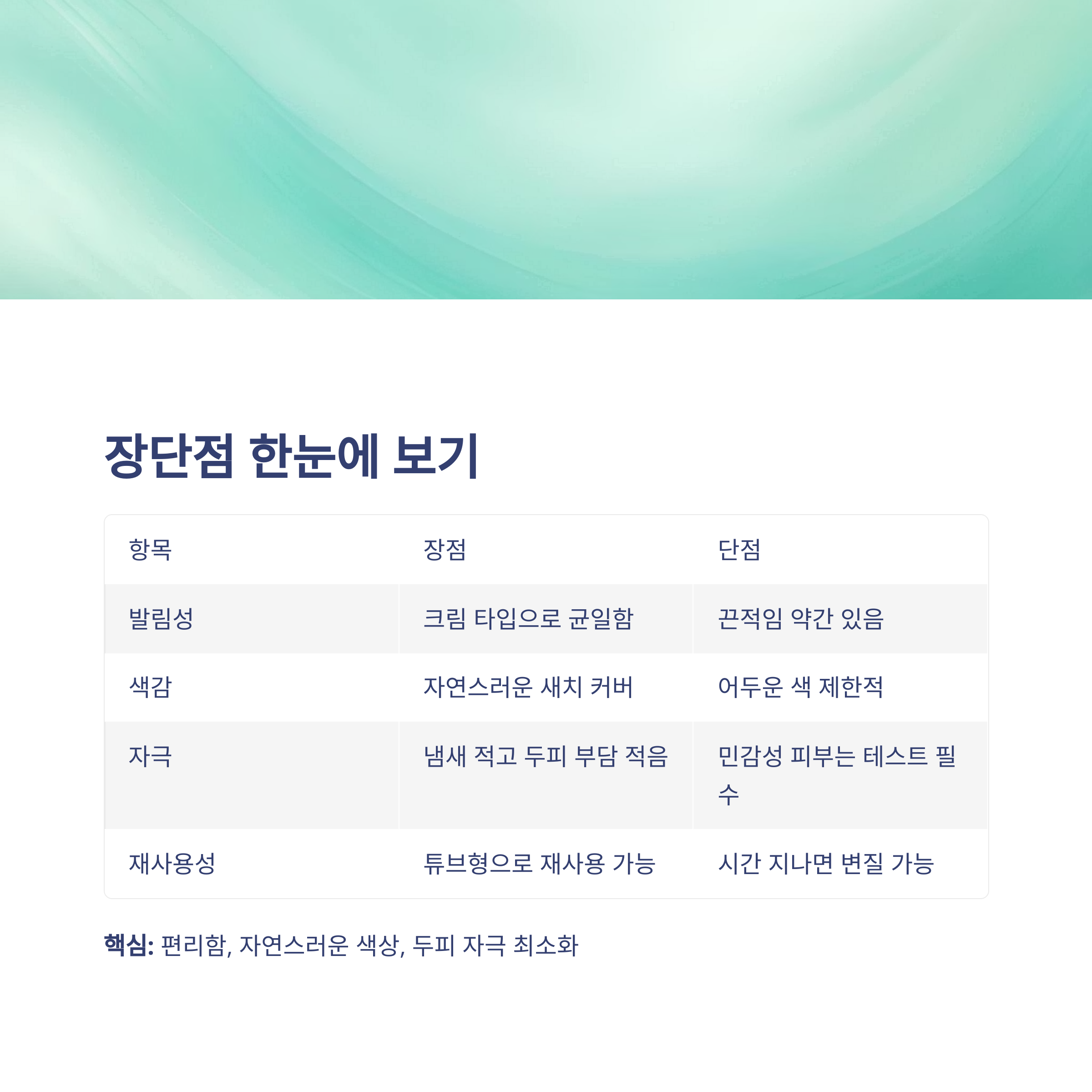 단, 완전히 밝은 색상 구현에는 한계가 있어 톤업보다는 커버에 적합합니다.