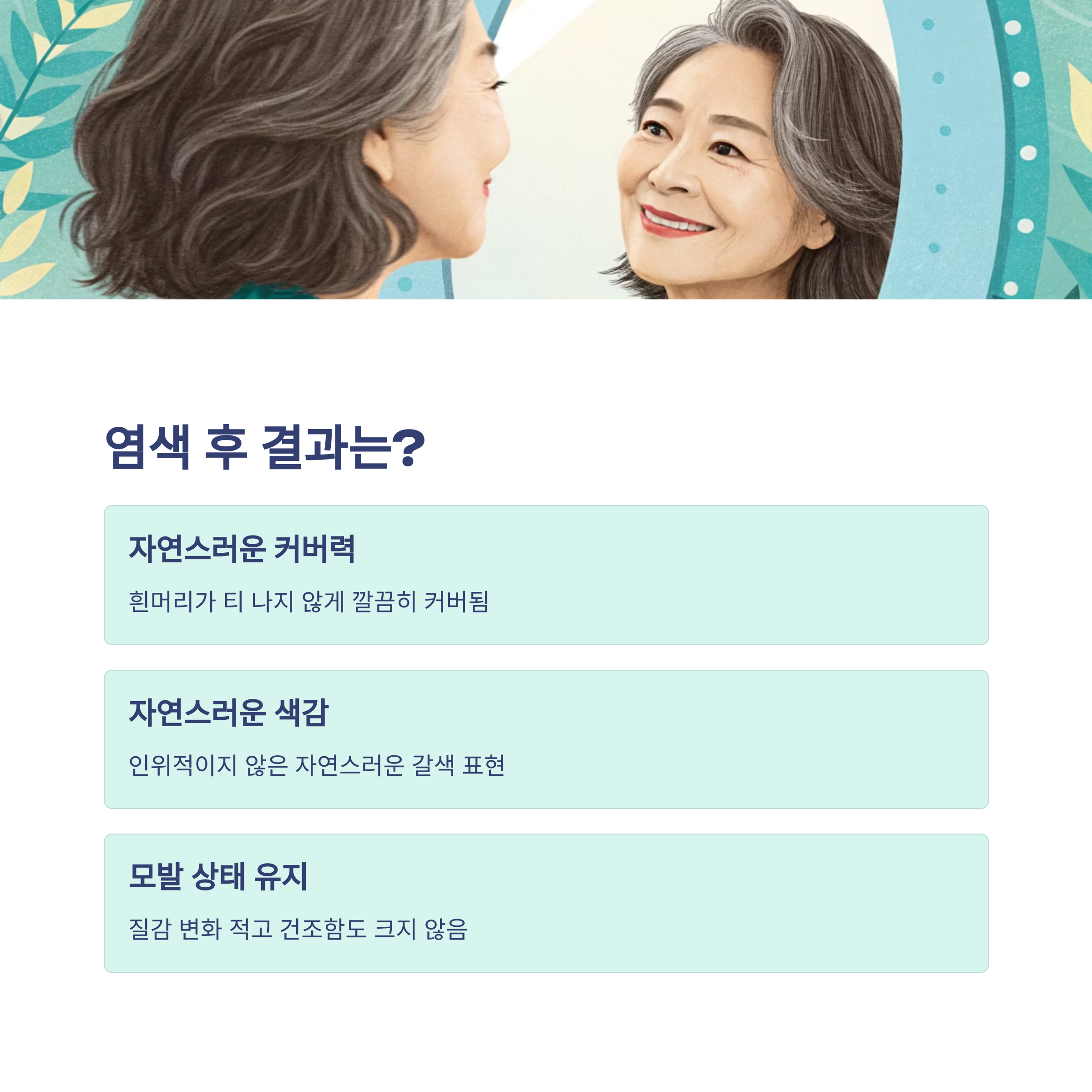 염색 후에는 트리트먼트로 케어해주고, 3~4주 주기로 리터치해주면
