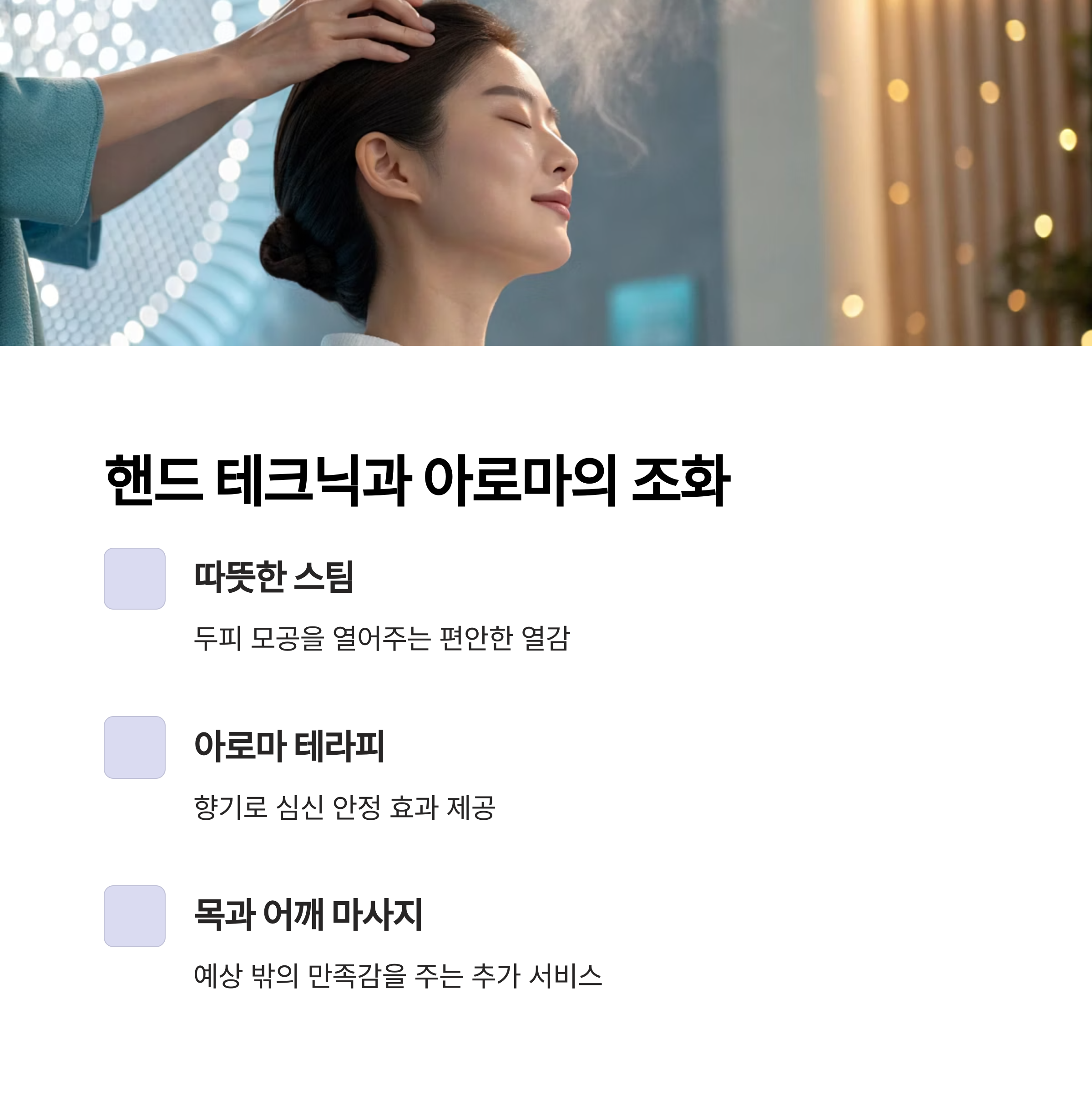 "단순한 미용을 넘어 몸과 마음까지 쉬어가는 시간을 원하신다면, 청담본점 헤드스파는 그 기대를 채워줍니다"