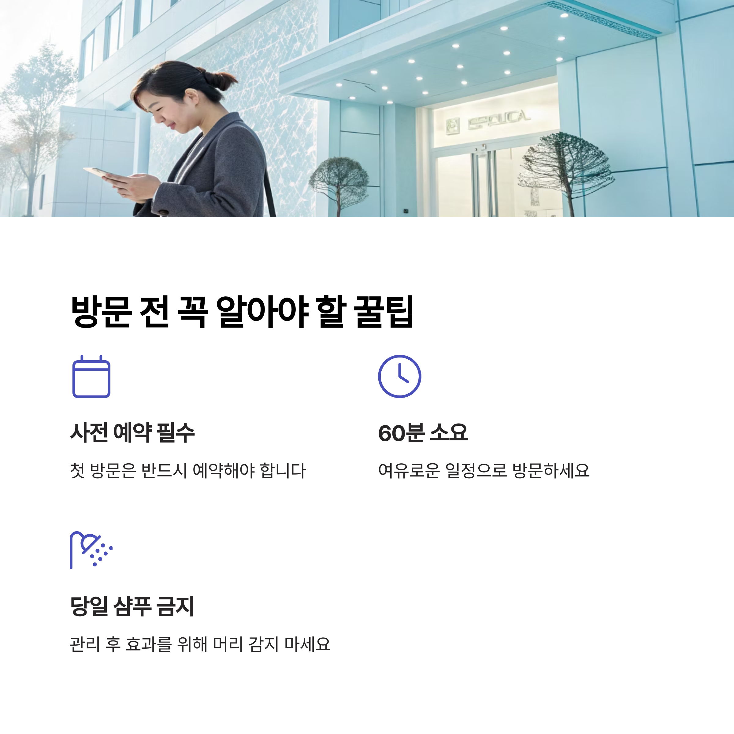 관리 후 당일엔 머리를 감지 말라는 팁도 잊지 마세요