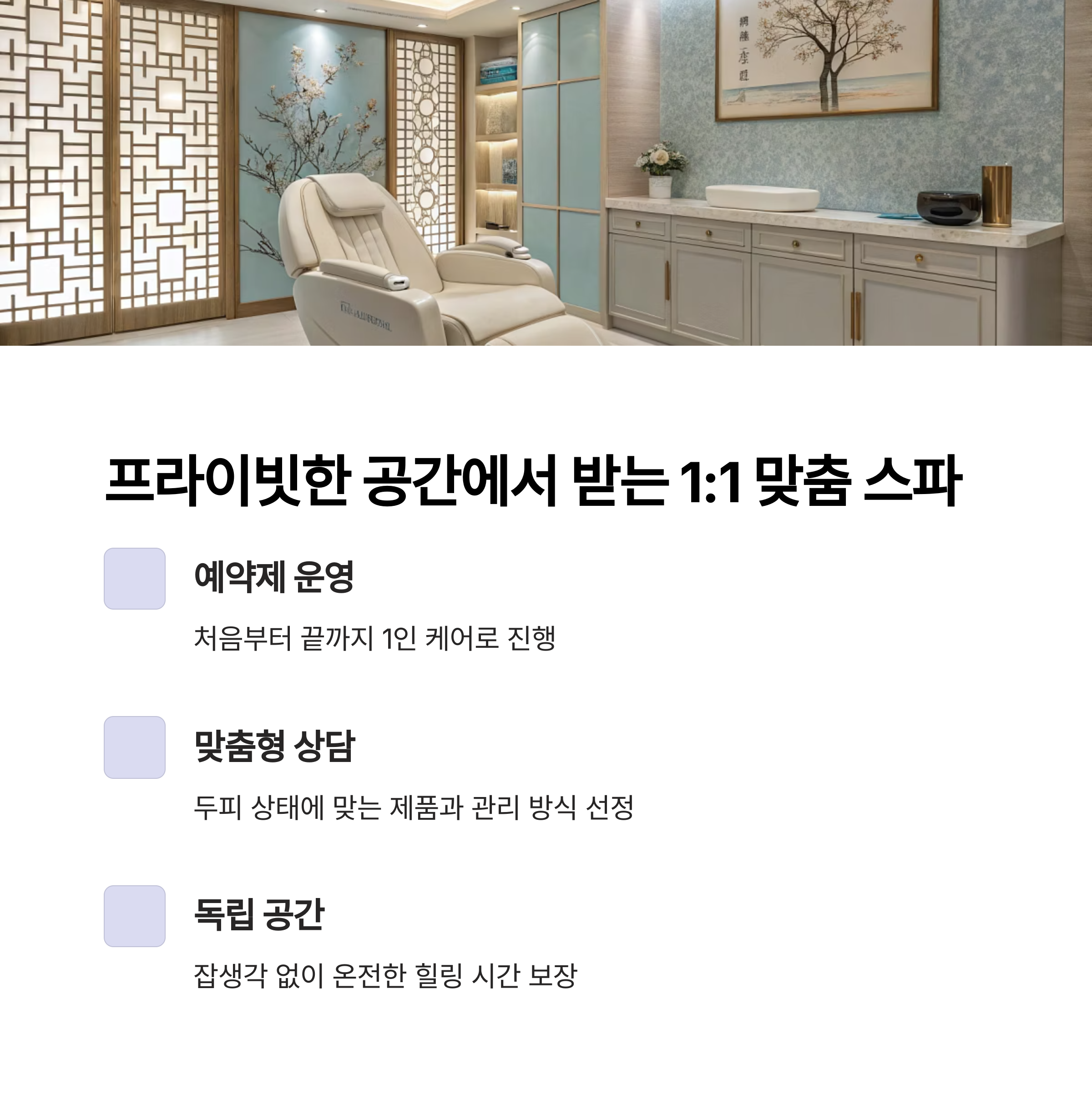 프라이빗한 공간에서 받는 1:1 맞춤 스파