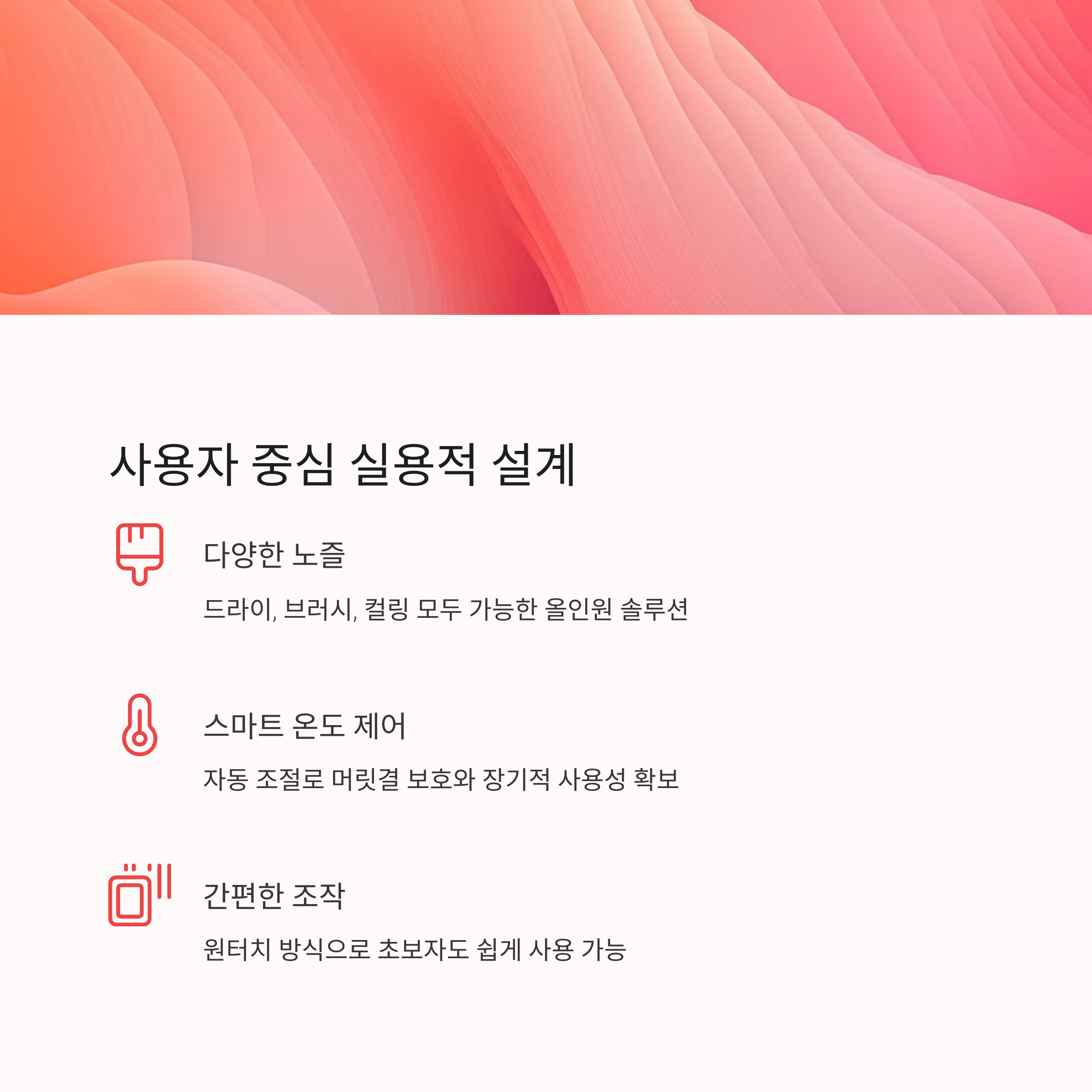 | 스마트 온도 제어 | 열 손상 최소화, 자동 조절 | 머릿결 보호, 장기적 사용 |