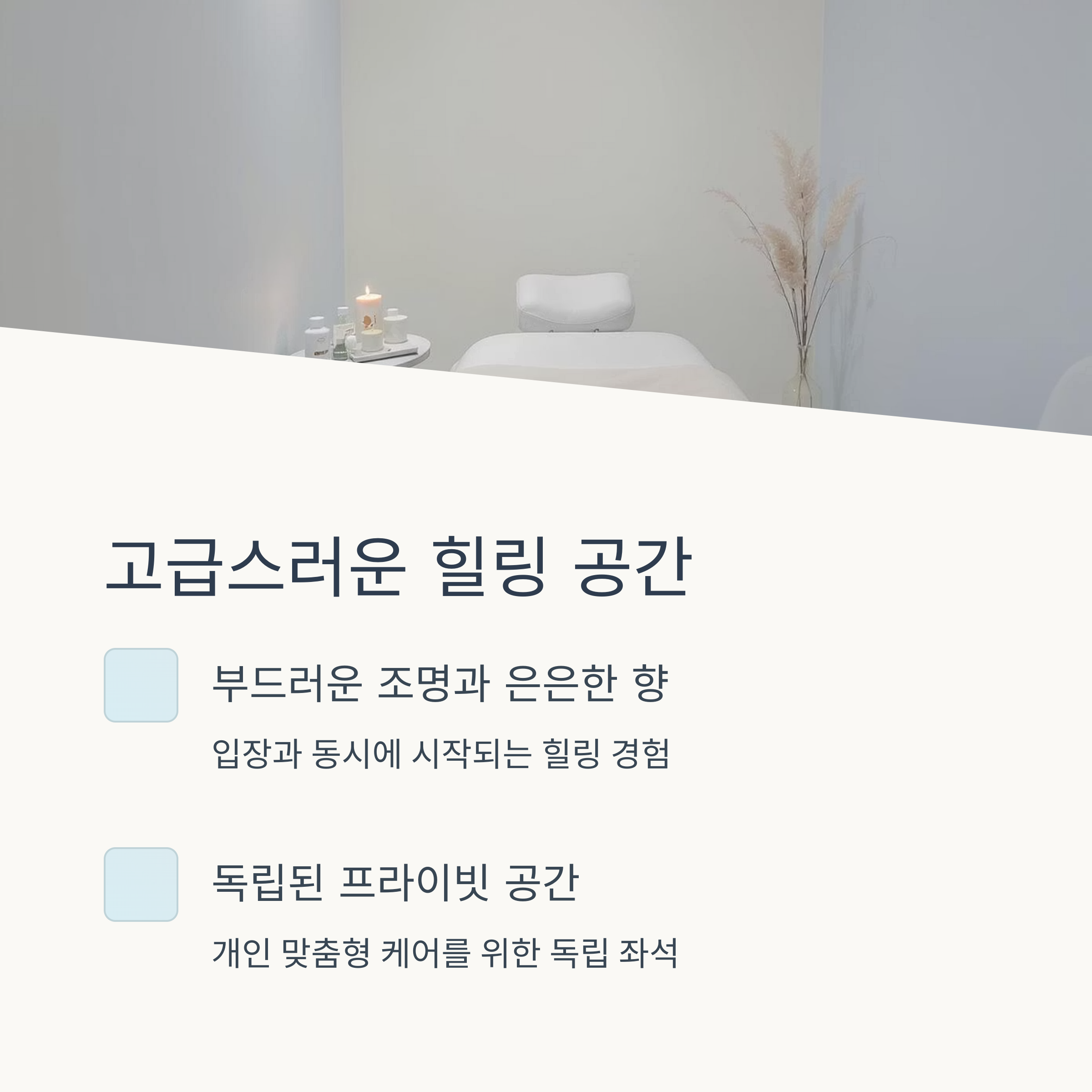 마음부터 편안하게 만들어 줍니다. 내부는 조명도 부드럽고 향도 은은해서