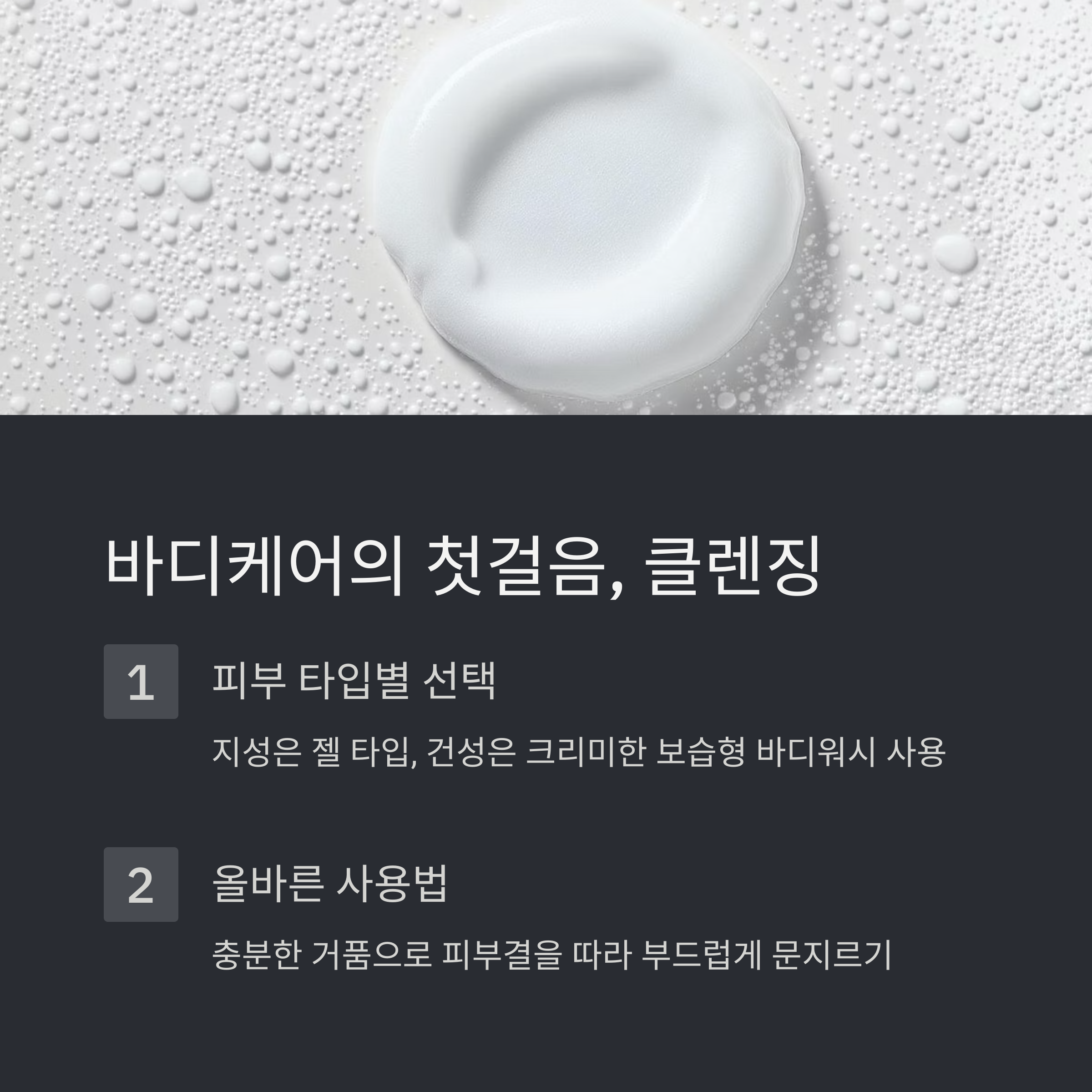 바디워시와 바디로션을 제대로 사용하는 방법만 알아도 피부결은 눈에 띄게 달라질 수 있습니다.