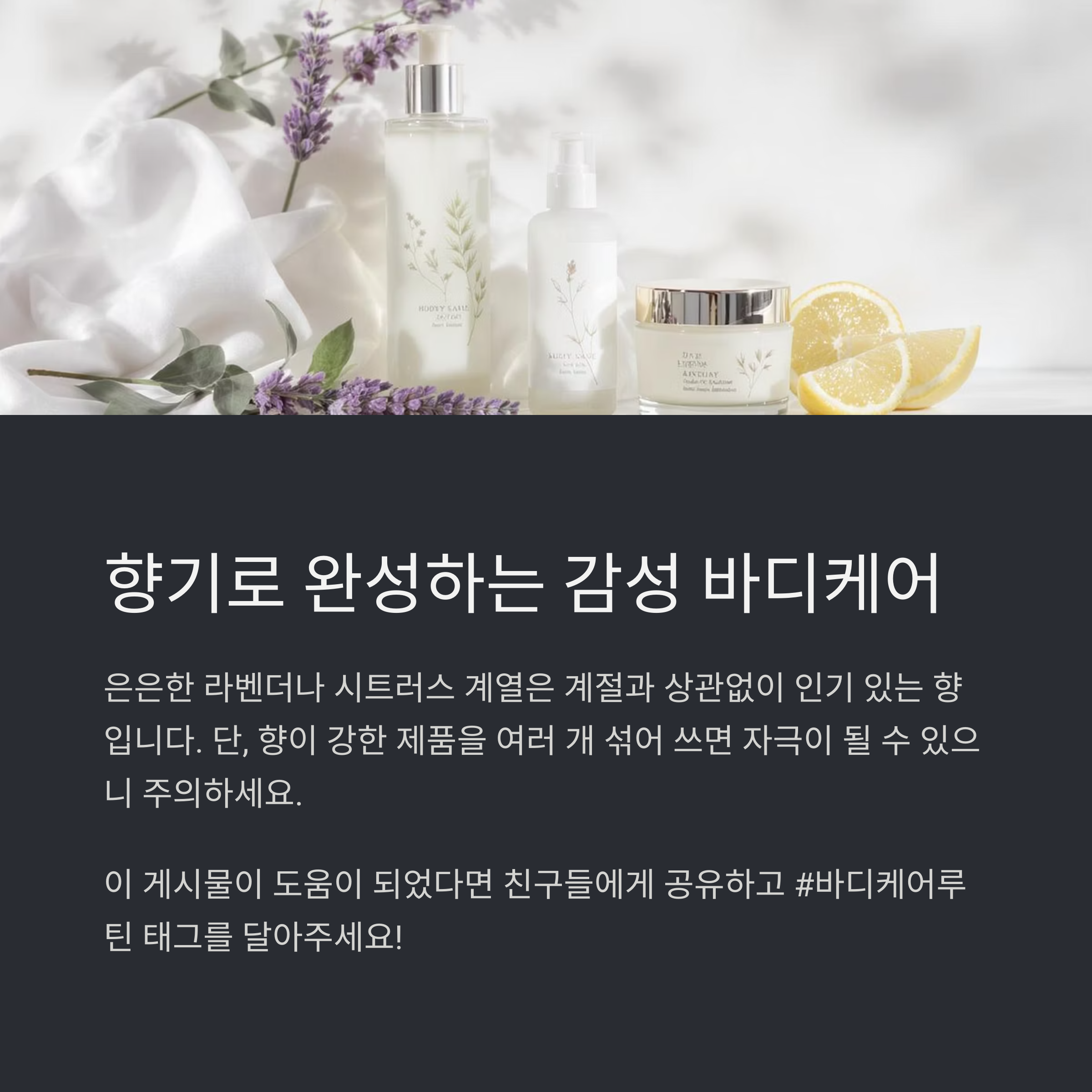 좋은 향의 바디제품은 기분 전환에도 큰 도움이 됩니다.