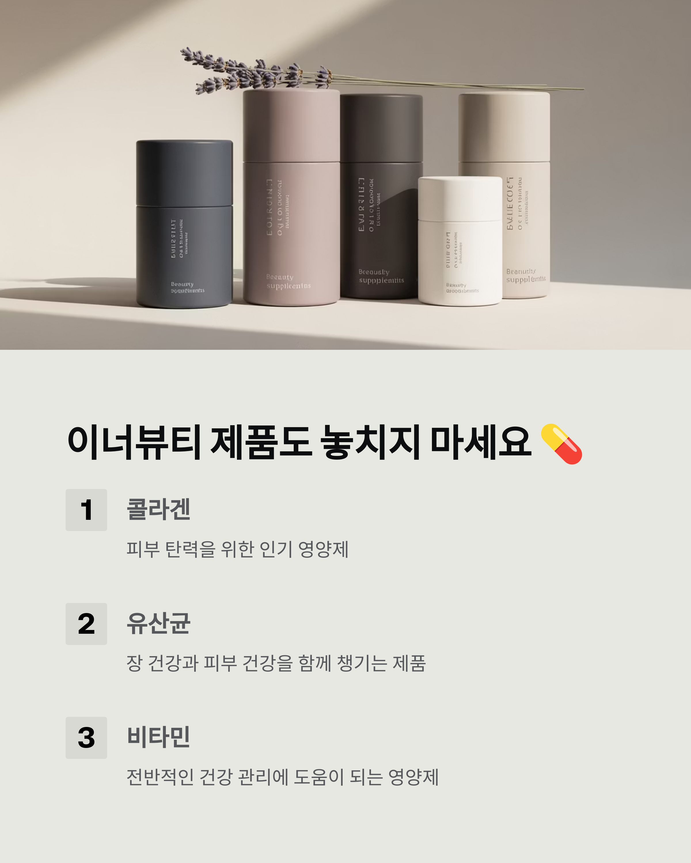 콜라겐이나 유산균, 비타민 같은 영양제를