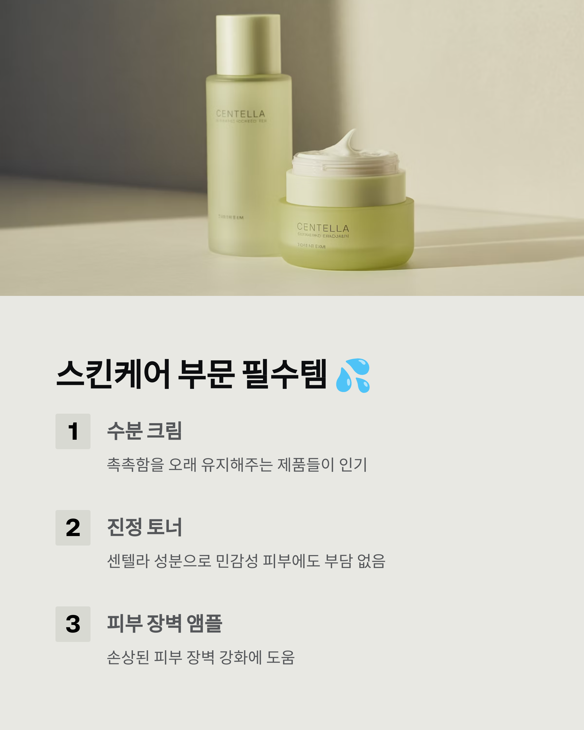 센텔라 성분을 담은 제품은 민감성 피부에도 부담 없이