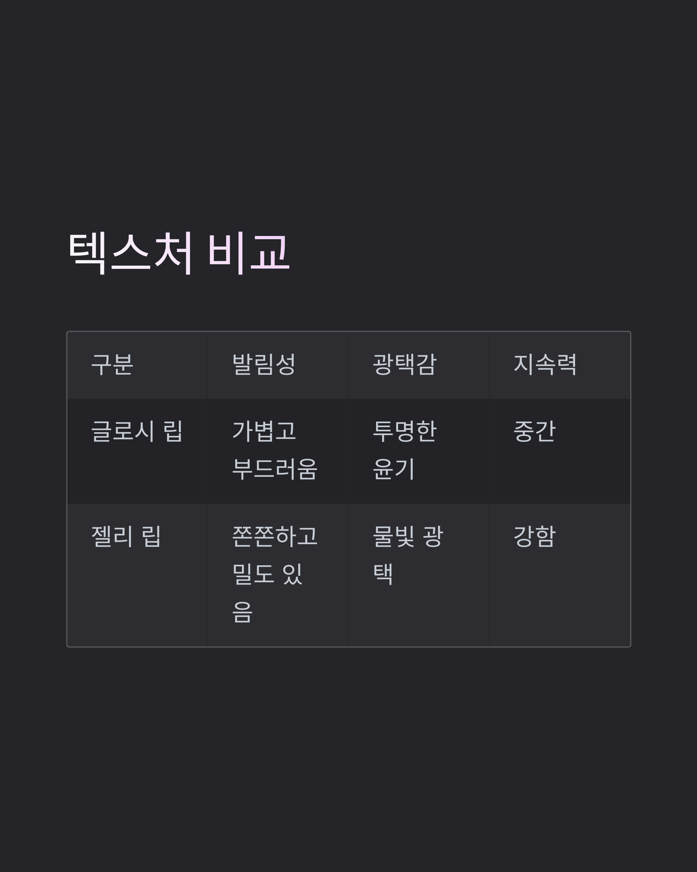립 텍스처 비교표