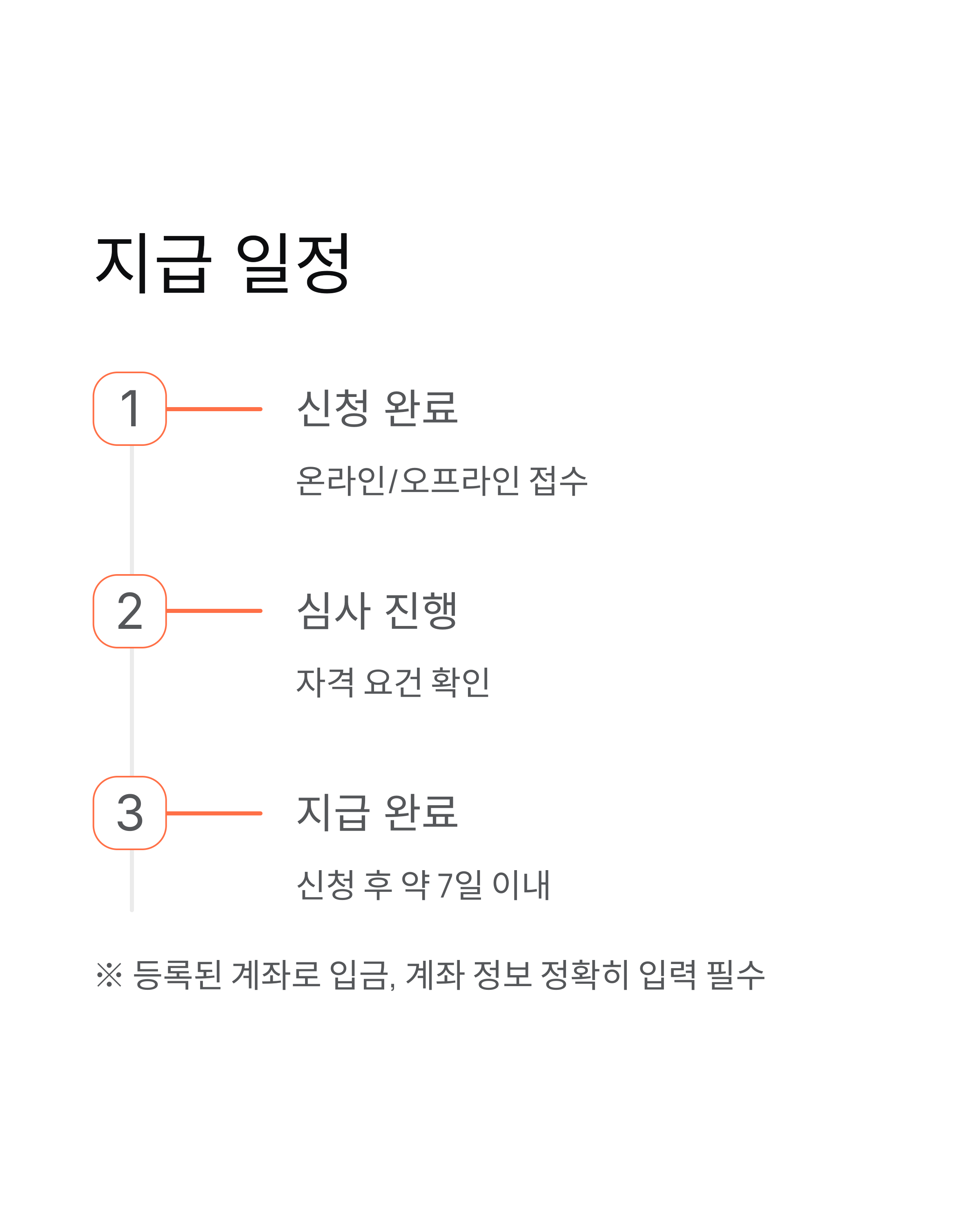 | 계좌 정보 정확성 | 본인 명의 계좌 사용, 계좌번호 오류 확인 |