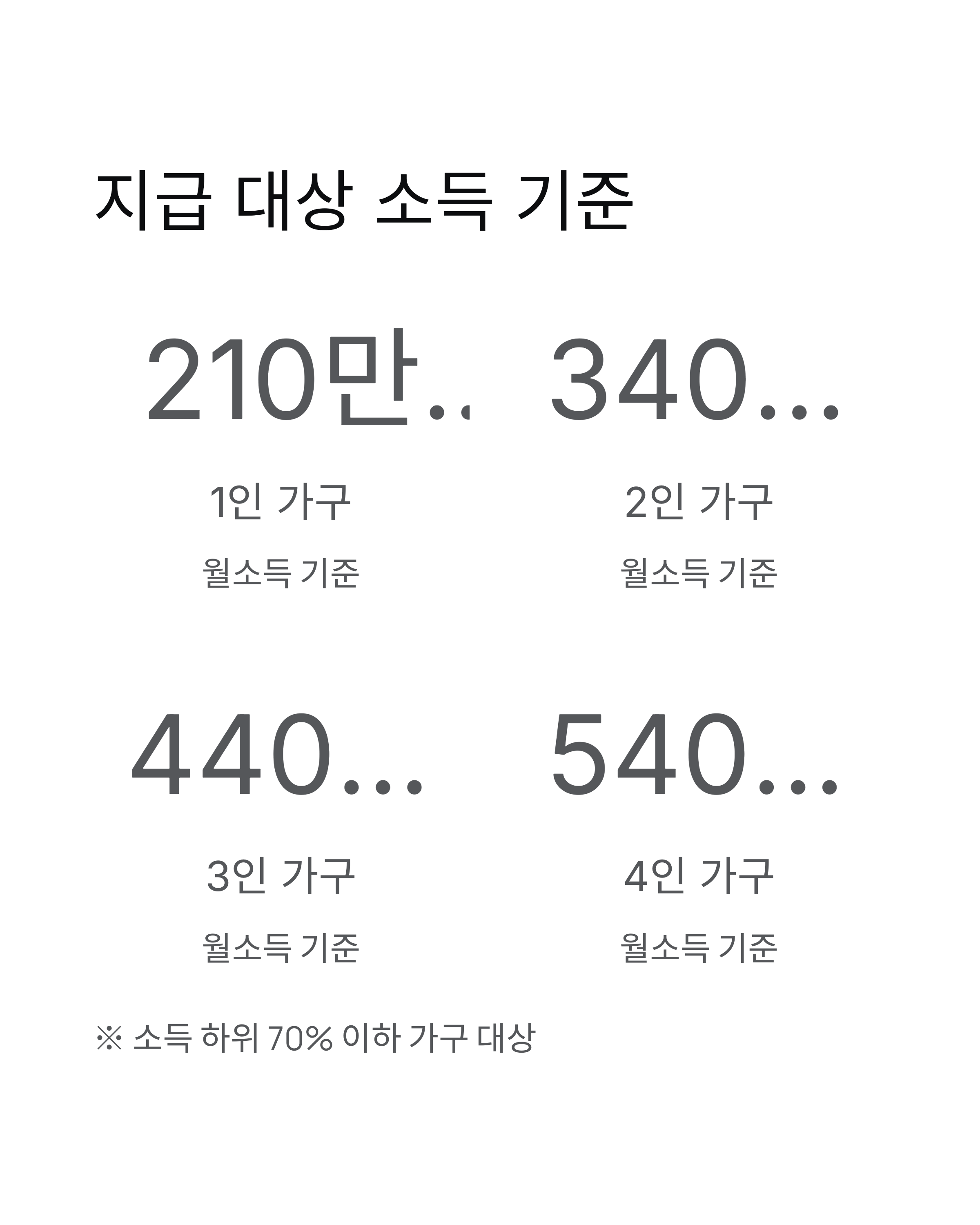 | 1인 가구 | 약 210만 원 이하 |