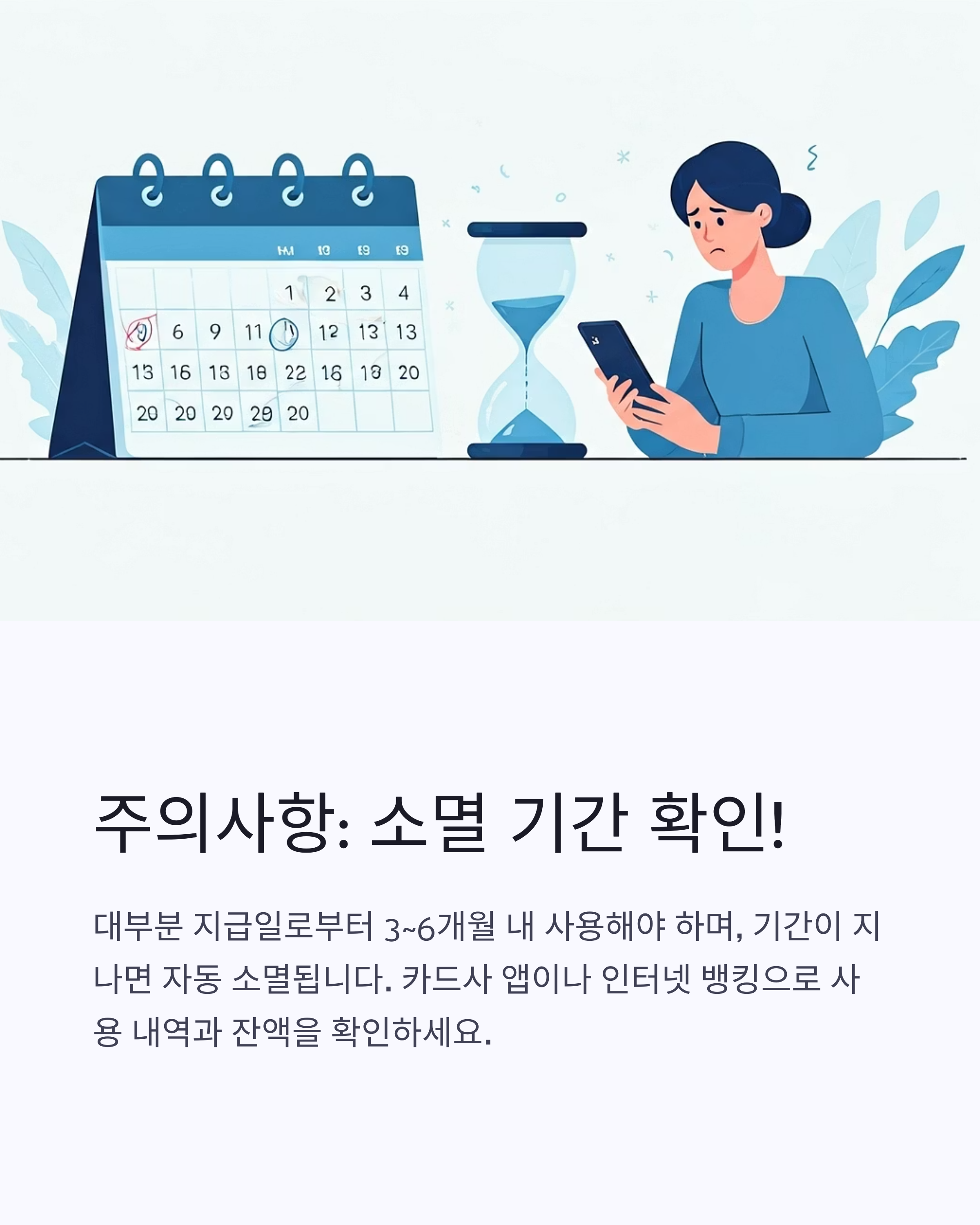 체크카드에 충전되며, 일정 기한 안에 사용해야 할 수 있습니다.
