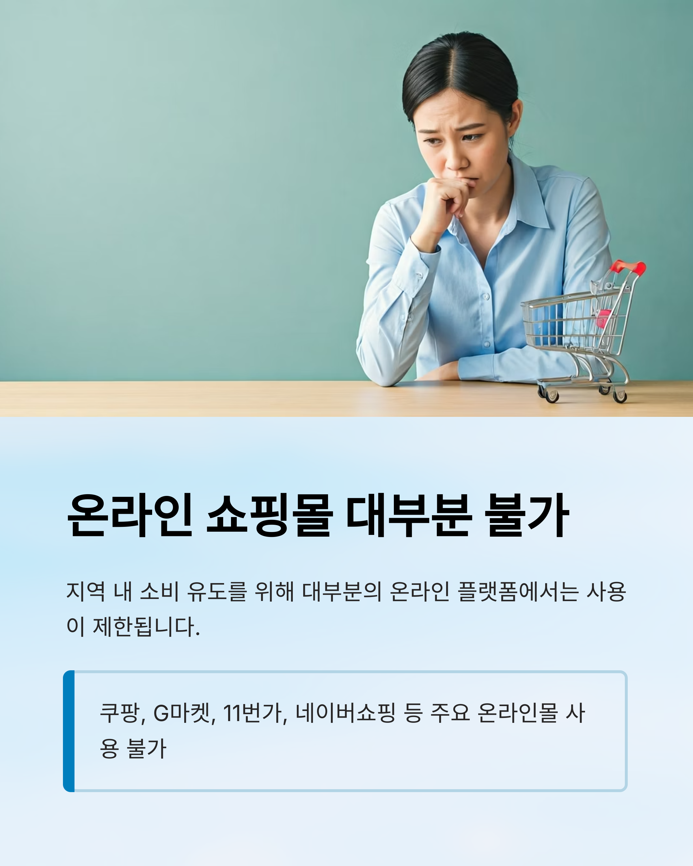 지역화폐나 선불카드 형식으로 지급된 경우, 대형 유통업체에서의 사용이 제한됩니다.
