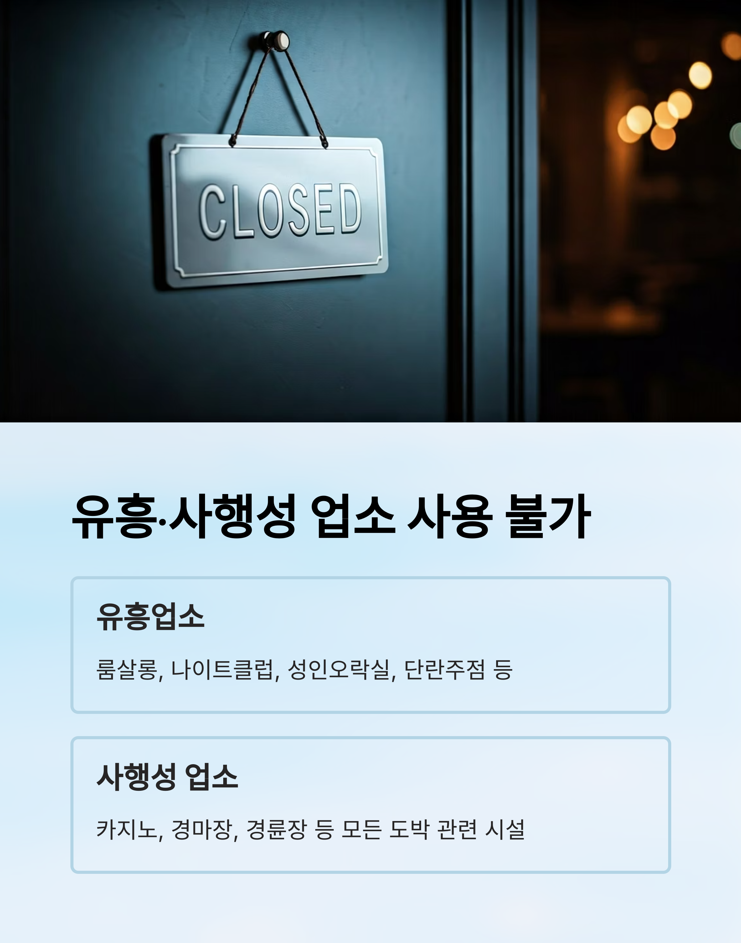 유흥·사행성 업소는 사용 불가