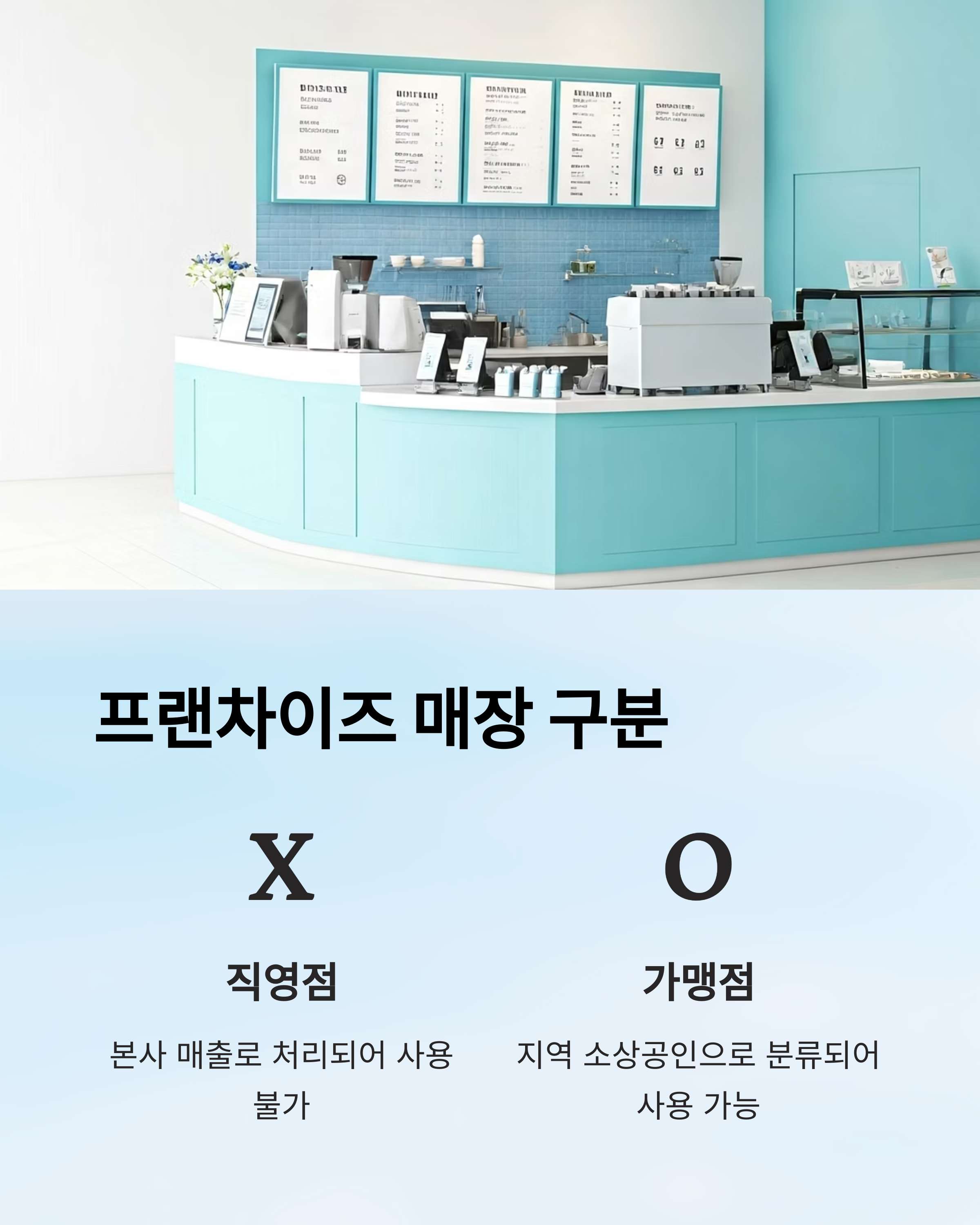 반면 가맹점으로 등록된 점포의 경우 지역 내 소상공인으로 분류되어 사용이 가능합니다.
