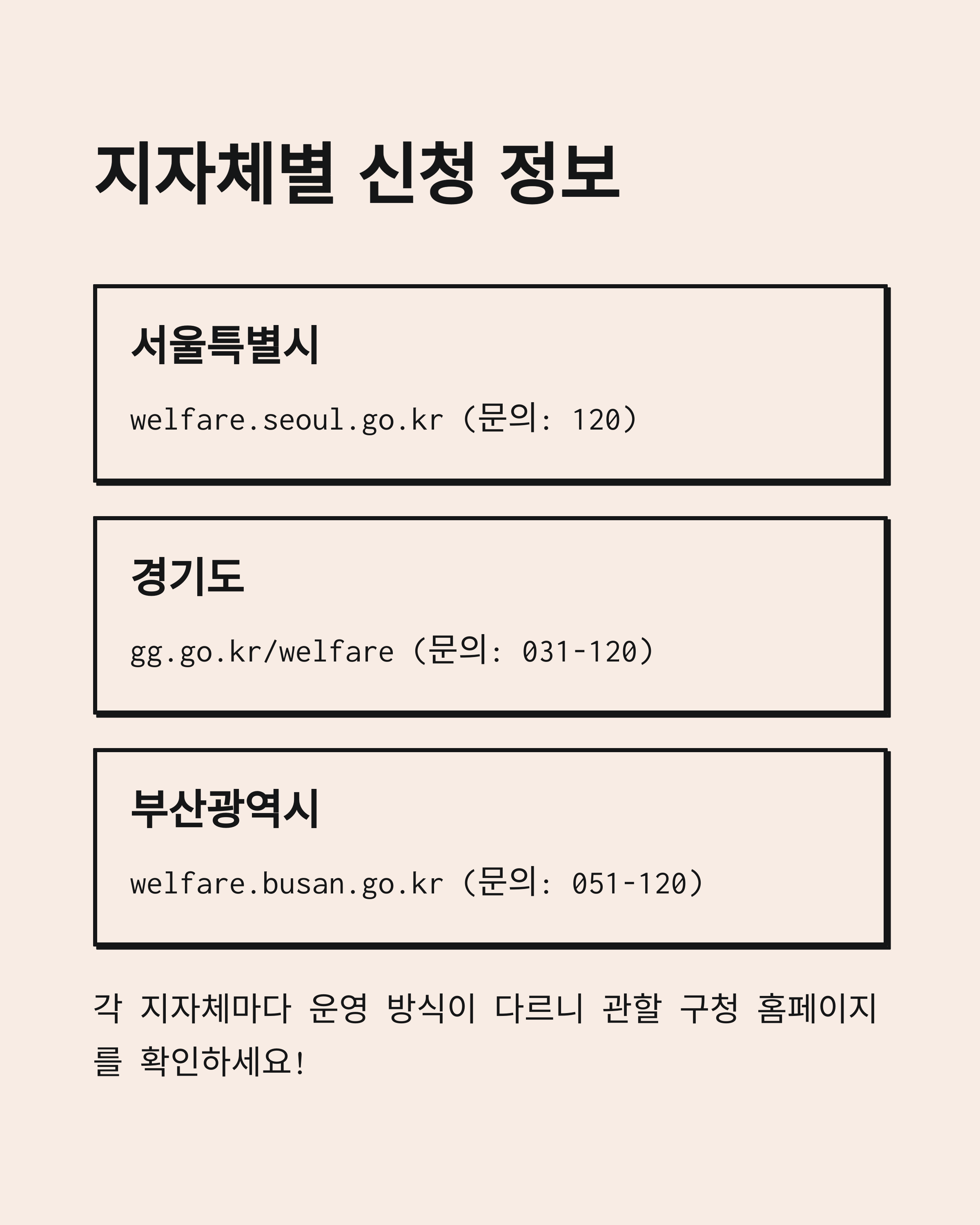 서울, 경기, 부산 등 각 지자체는 자체 복지포털을 통해 공지하니