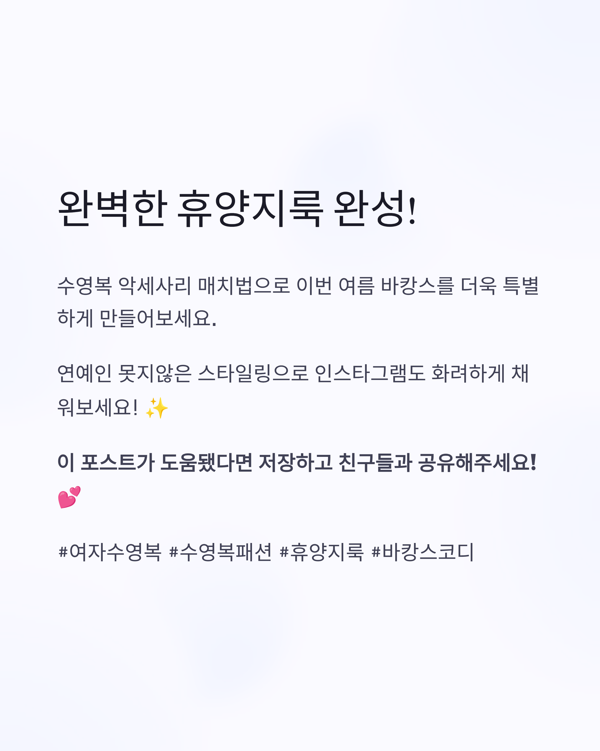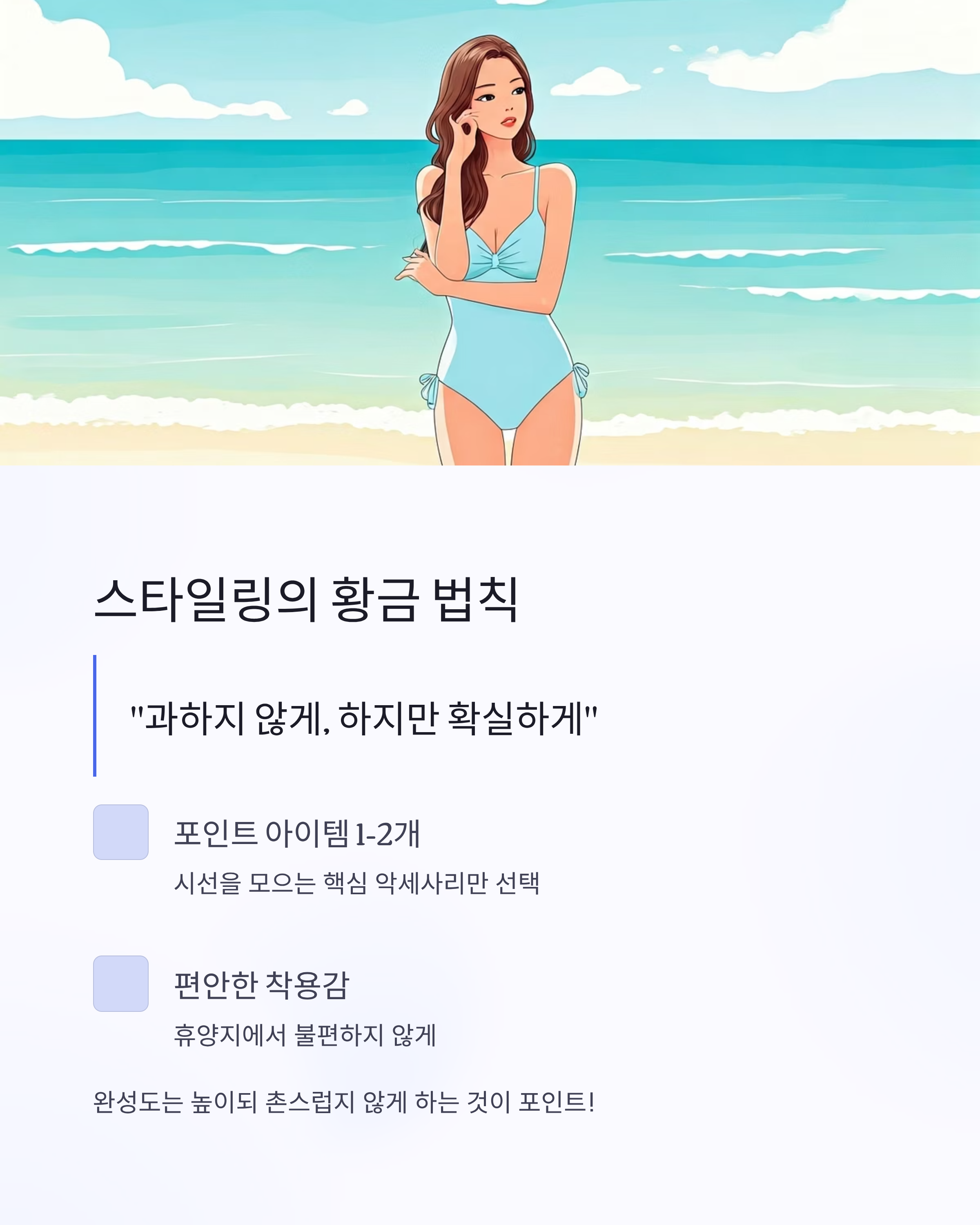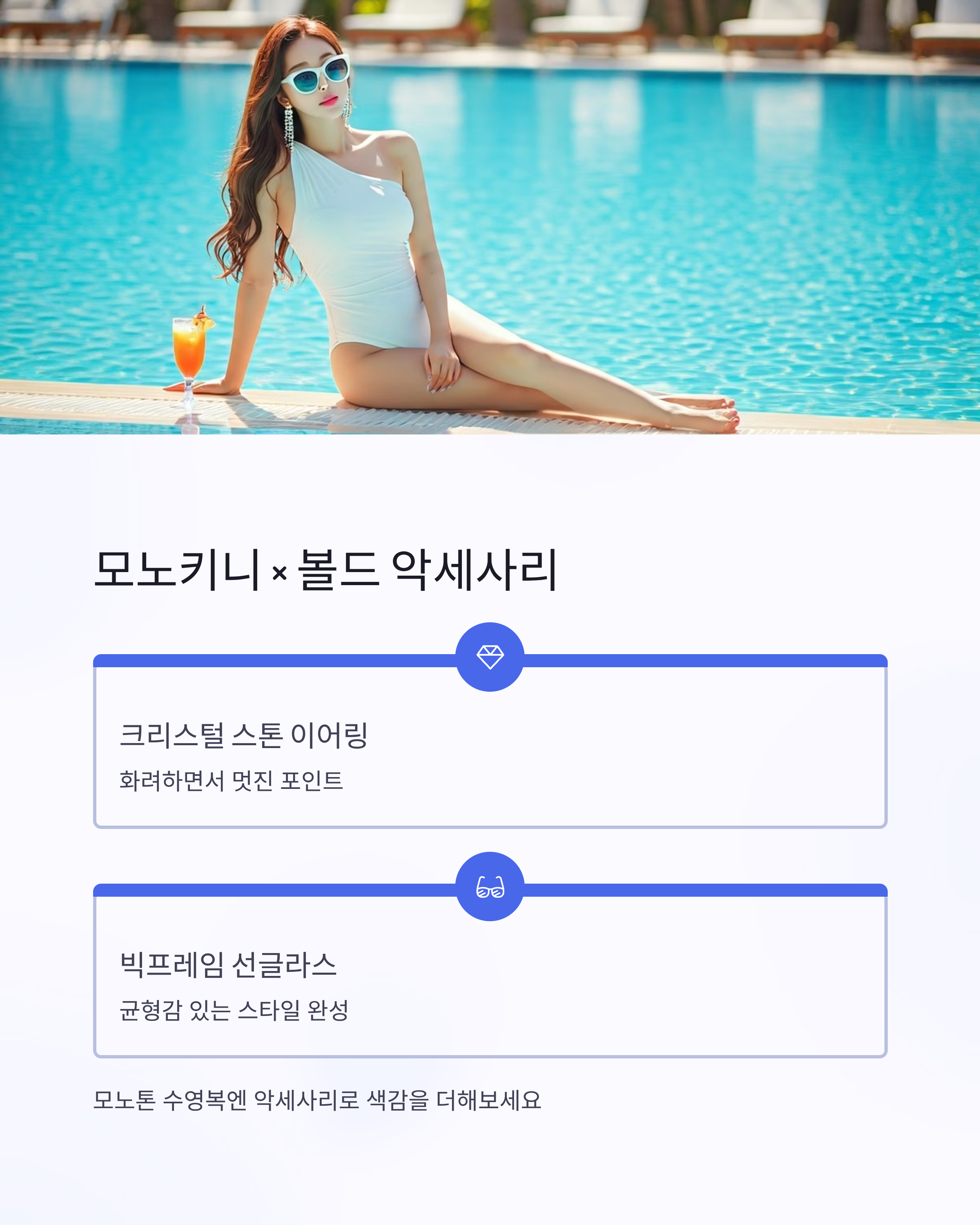 수영복 악세사리는 전체 스타일의 완성도를 높이되,