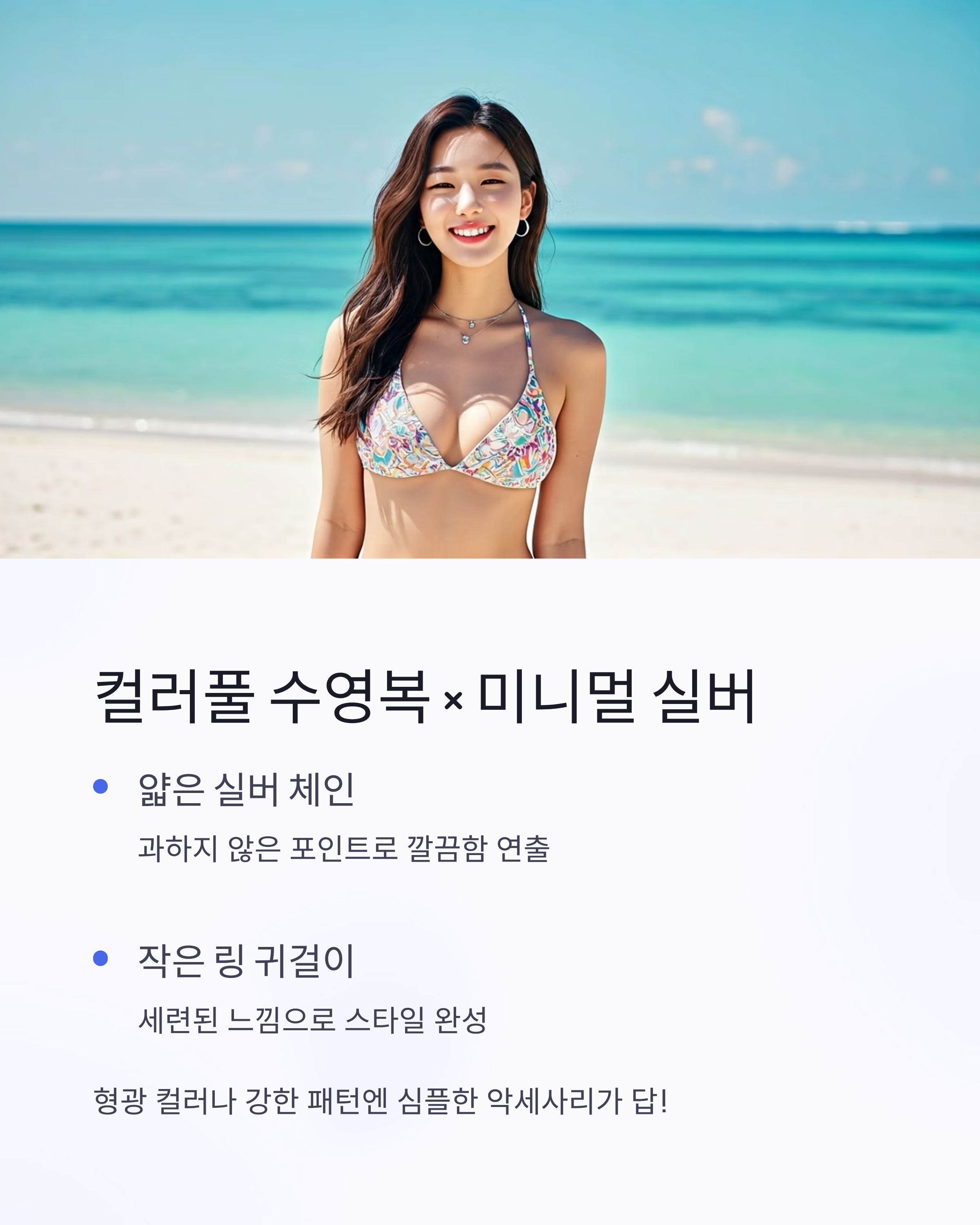 컬러풀 수영복엔 미니멀한 실버 악세사리 추천